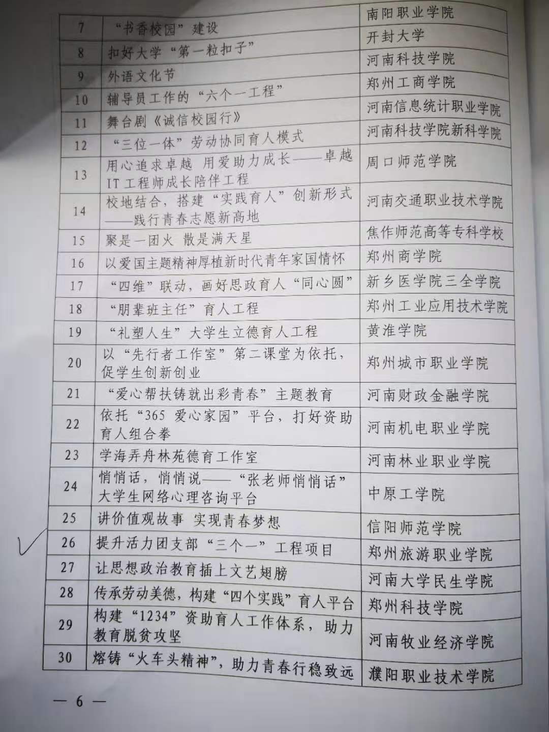 河南省教育厅日前发布决定,表彰2020年普通高等学校学生工作优秀成果,pp电子旅游外语学院的《提升活力团支部“三个一”工程项目》代表荣获优秀成果三等奖。