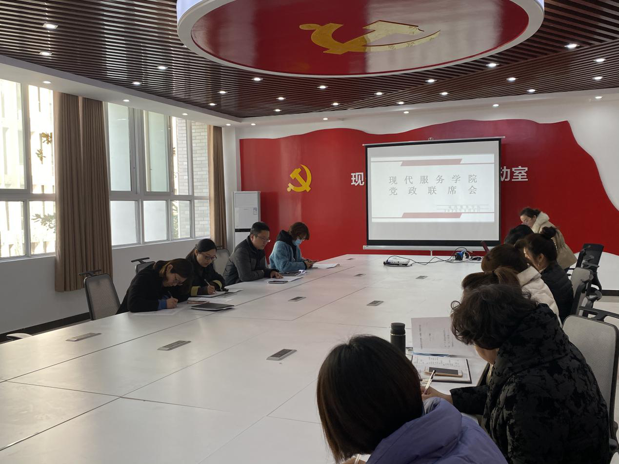3月3日下午,现代服务学院在党员活动室召开新学期第1次党政联席会。学院领导班子出席会议,全体党员及副科级以上干部参加。院长许向蒲主持会议。