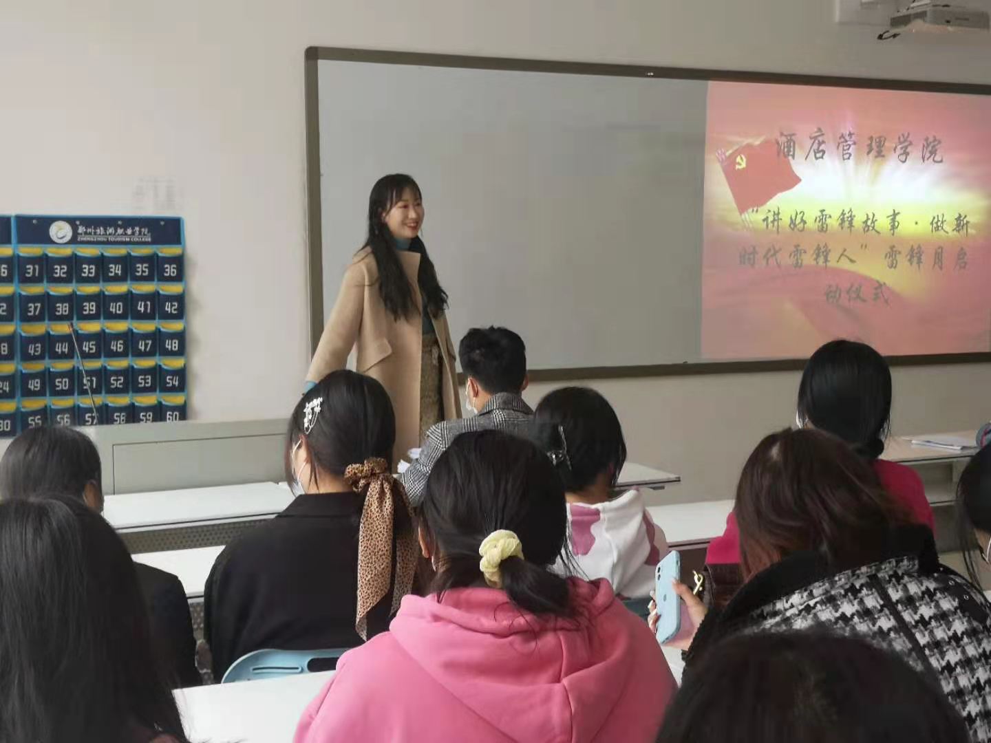 为深化向雷锋同志学习,讲好雷锋故事,传承雷锋精神,弘扬奉献、友爱、互助、进步的志愿者精神,培育践行社会主义核心价值观,坚持立德树人,推进三全育人,实现服务育人、实践育人、文化育人,不断增强新时代大学生的责任感和使命感,持续推动学雷锋志愿服务品牌化制度化常态化,酒店管理学院于3月6日组织各班举行“讲好雷锋故事 做新时代雷锋人”雷锋月启动仪式,并召开“传承雷锋精神 展志愿服务风采”主题班会。