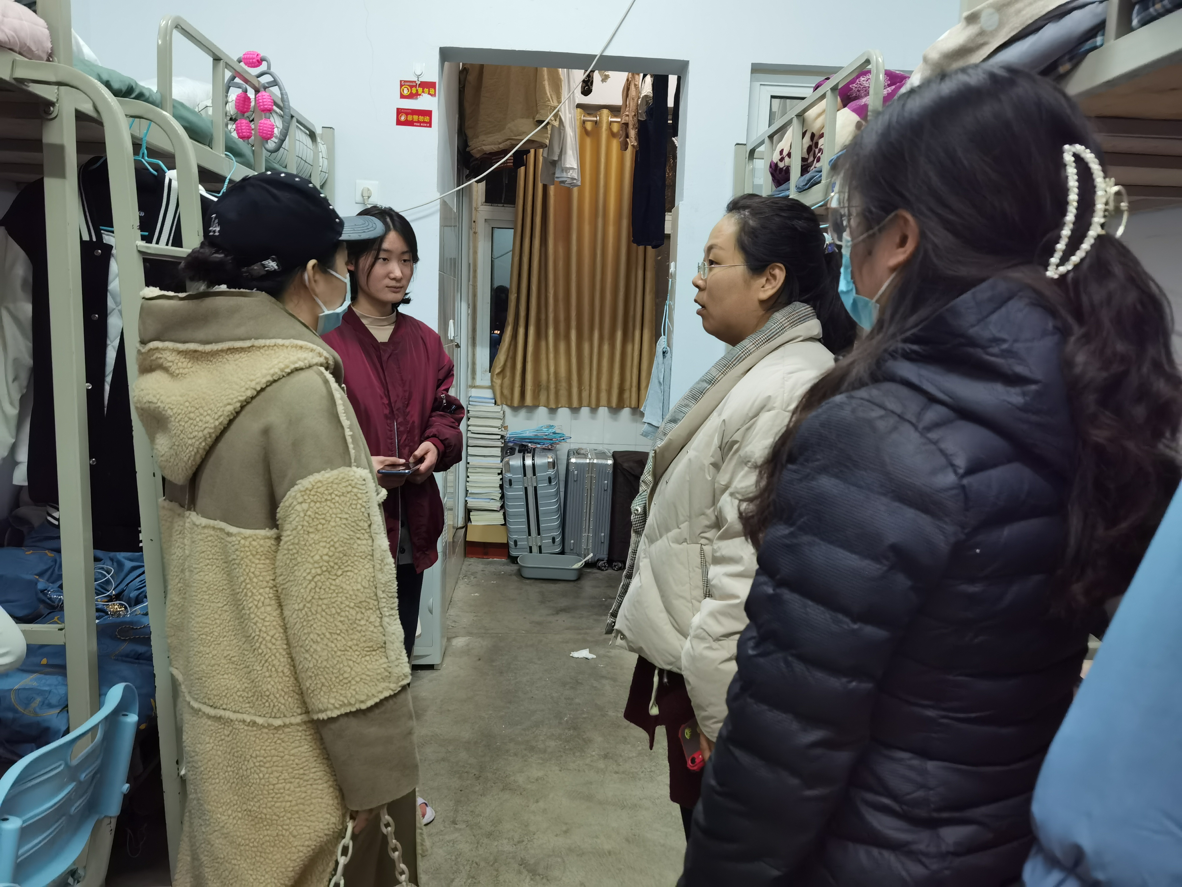 在走访过程中,辅导员们要求同学们保持宿舍干净卫生,注意用电安全,嘱咐大家多注意室内通风,保证同学们的身体健康。同时,希望同学们在新学期尽快调整生活状态,投入到紧张的学习中,强调宿舍长要起带头作用,引领整个宿舍的共同进步。