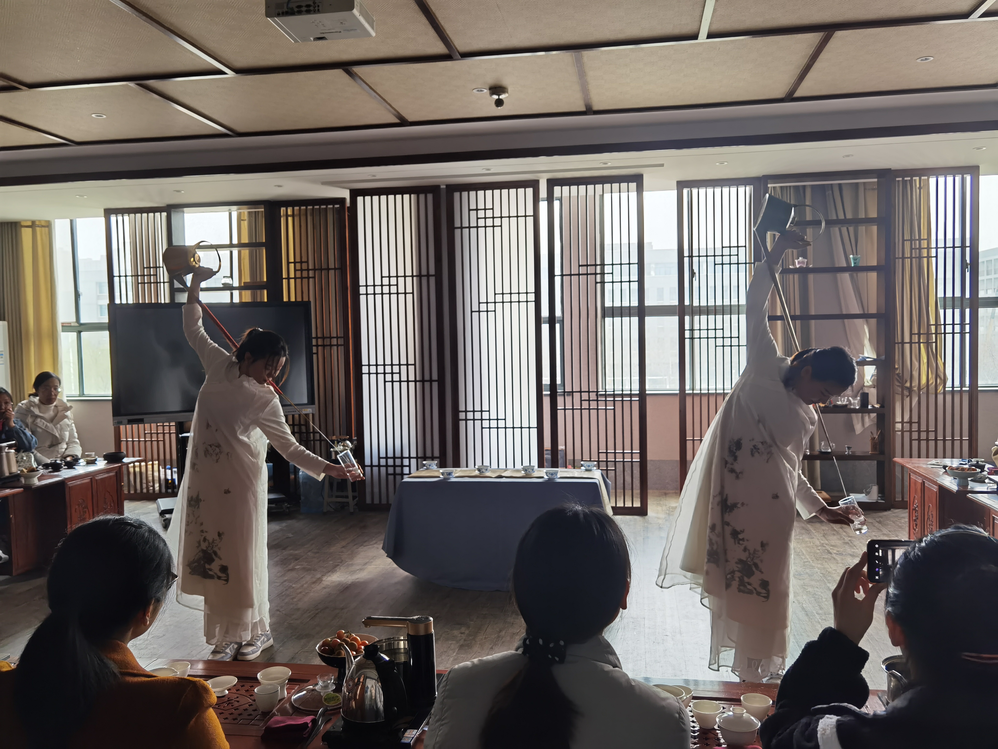 活动开始前,余副院长就酒店管理学院对此次活动的大力支持表示感谢,陈海彬书记对军校领导和老师们的到来表示热烈欢迎,并向双方单位全体女教职员工致以节日的祝福。肖靖院长也现场指导活动。活动中,酒管学院的张强老师为大家带来了一堂生动的茶艺课程,让老师们对茶的种类、茶的文化、茶的储存、泡饮有了更深入的了解,而后老师们动手实践了泡茶的礼仪和流程,既丰富了知识,又陶冶了情操。最后,老师们欣赏了酒店管理学院学生们带来的茶艺表演,活动圆满结束。