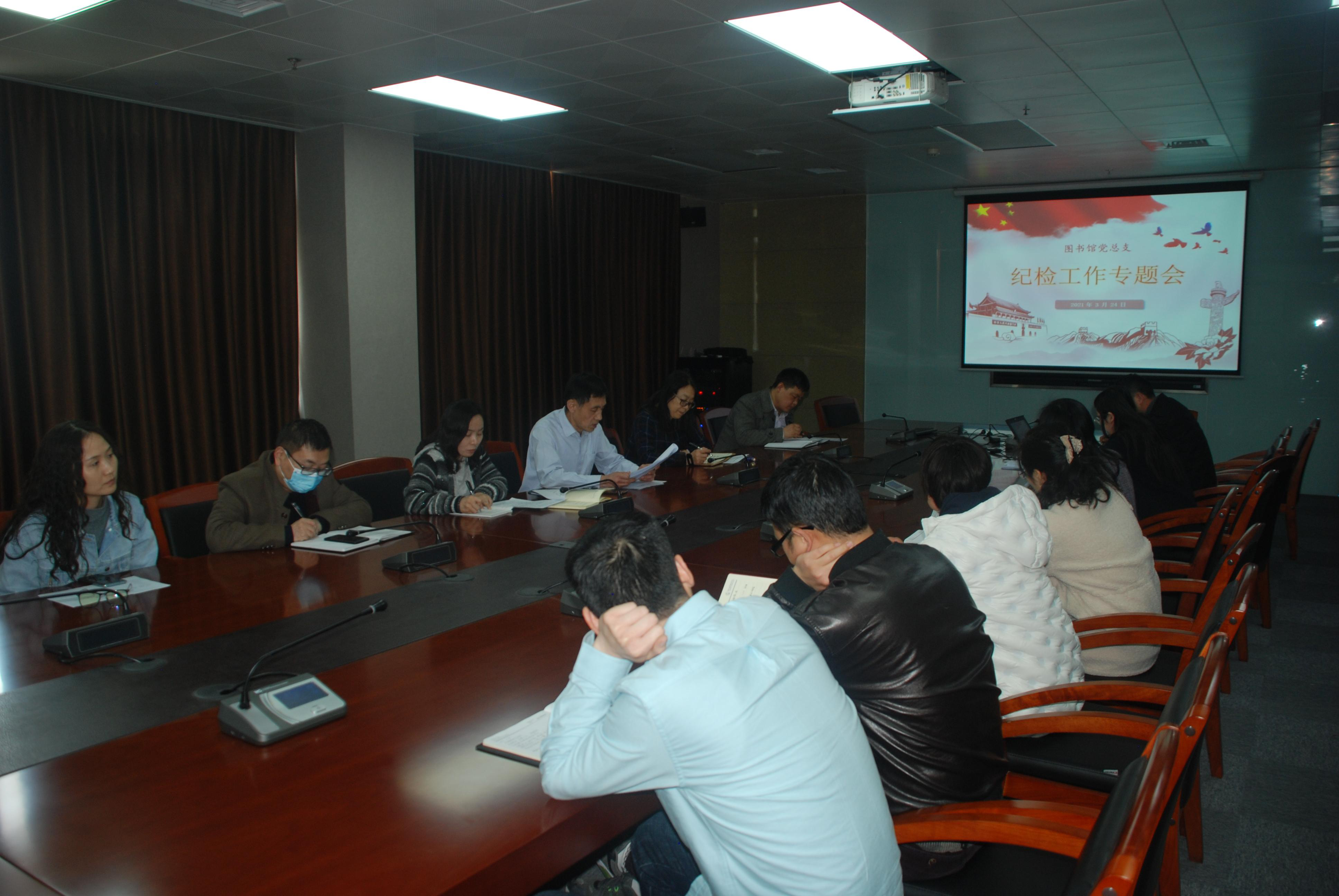 3月24日下午,图书馆党总支在图书馆1503会议室召开2020—2021学年第二学期纪检工作会。会议由图书馆党总支书记何蜀川主持。信息中心主任张钦、图书馆馆长王庆华以及两个部门的全体副科级以上干部和党员参加了会议。