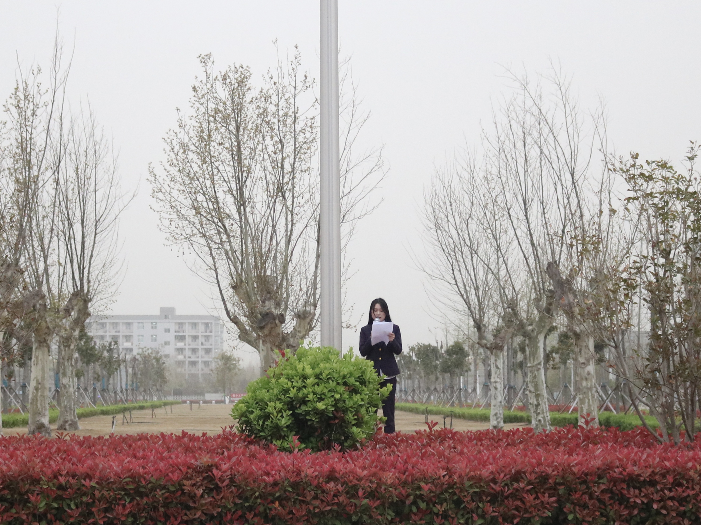 来自20级城轨一班的学生代表张晓雪做国旗下的演讲。她讲到,今年是中国共产党成立100周年。历史雄辩地证明,没有共产党就没有新中国,没有共产党就没有中国特色社会主义,没有共产党就没有中华民族的伟大复兴。从红船精神,井冈山精神,苏区精神,长征精神,延安精神,沂蒙精神,西柏坡精神一路走来,中华民族迎来了从站起来、富起来到强起来的伟大飞跃。我们青年学生要认真学习党的历史,从党的百年历史中汲取智慧和力量,让红色基因、革命薪火代代传承。