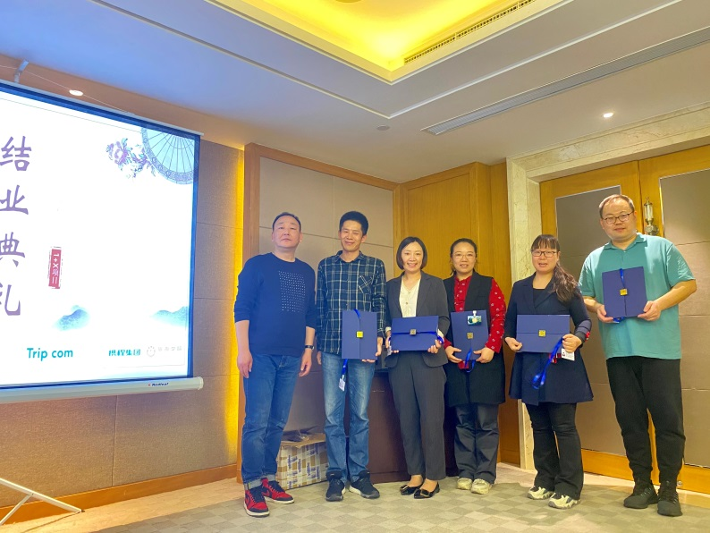 30日结业典礼上,携程旅游学院院长徐郅耘和执行院长孔文捷出席并致辞,同时为参训老师们颁发结业证书、考评员证书,并为考核方案优秀学员颁发奖品。其中,我院李霞老师获得妙笔生花奖,邓莎莎老师获得优秀创意奖。