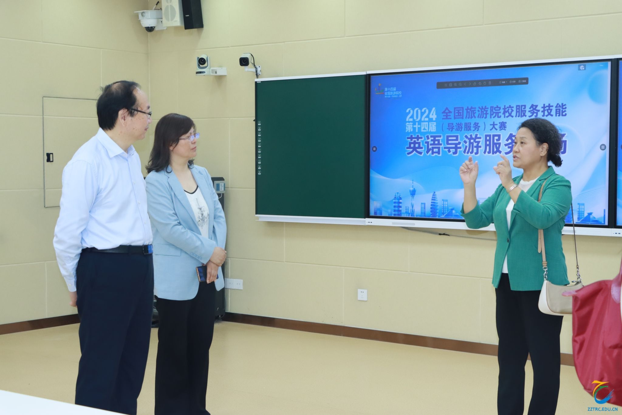 第十四届全国旅游院校服务技能(导游服务)大赛开赛在即,为确保大赛平稳有序进行,4月18日,中国旅游协会旅游教育分会秘书长谷慧敏一行莅到pp电子游戏平台网站考察赛前筹备工作,该校党委书记王艳红,校长文广轩陪同考察。