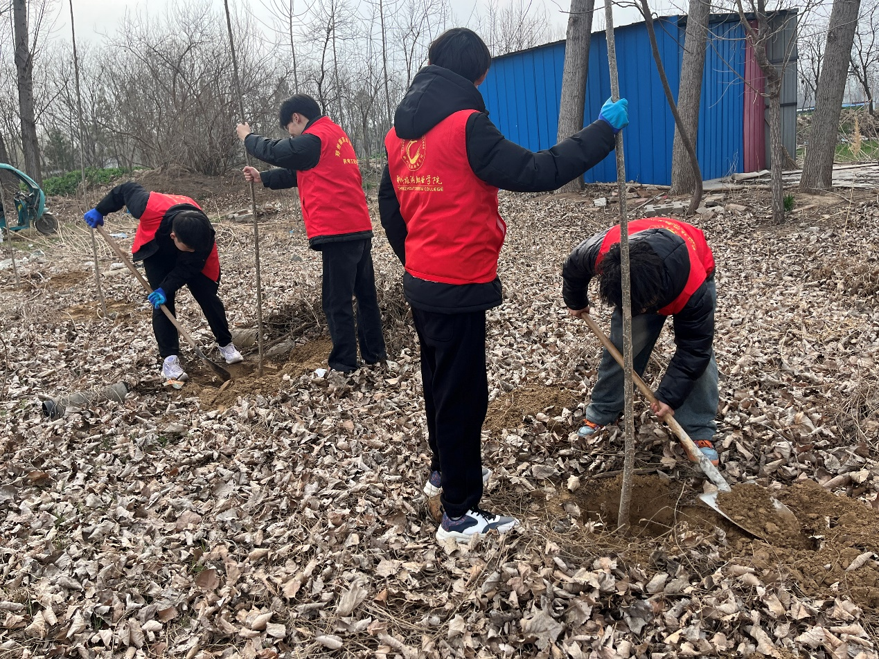 3月11日,智·青春志愿服务队20余名学生志愿者前往校园周边区域开展“弘扬雷锋精神,共建绿色家园”志愿植树活动。志愿者们挥锹铲土、扶苗填坑、提水浇灌,分工协作完成杨树、桂花树等苗木种植30余棵。植树不仅是劳动教育,更是生态责任的传递。希望同学们以行动践行‘绿水青山就是金山银山’的理念,做绿色发展的倡导者和实践者。新栽的树苗在春风中昂然挺立,为城市增添了一抹生机。