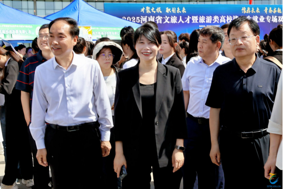 河南省文化和旅游厅科教处处长王亚斐、河南省非物质文化遗产保护和智慧化中心书记闫君健,以及pp电子游戏平台网站党委书记王艳红,院长肖世才,党委委员、副院长徐永清,党委委员、副院长张建军等领导参加了双选活动,并与招聘企业代表、实习生、毕业生进行了深入交流。