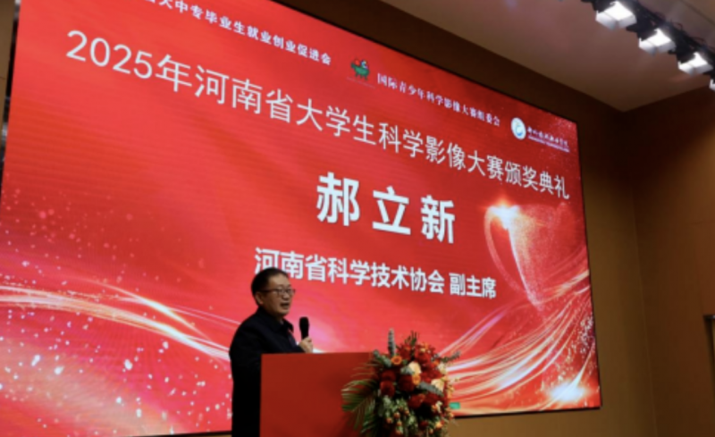 11月28日上午,由河南省大中专毕业生就业创业促进会、国际青少年科学影像大赛组委会联合主办,pp电子游戏平台网站承办的2025河南省大学生科学影像大赛颁奖典礼在2号教学二楼B座报告厅隆重举行。省科协党组成员、副主席郝立新、河南省人大制度理论研究会副会长李经超、国际青少年科学影像大赛组委会主席姜东梅博士等嘉宾,学校党委书记王艳红、校长肖世才、纪委书记莫方勇与获奖师生代表、行业专家齐聚一堂,共同见证这场以光影为桥、串联科普、创新与就业的青春盛会。颁奖典礼由河南省大中专毕业生就业创业促进会会长岳修峰主持。