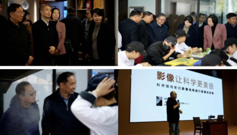 颁奖典礼过后,参会领导走进专业实训室和学生的课堂,观摩学生的技能展示,与学生进行互动,密切交流;特邀行业专家吕尚伟教授以《影像让科学更美丽--科学微电影的影像化构成和影像化实现》为主题开展讲座,强调科学影像需兼顾“准确性”与“趣味性”,肯定青年创作者为科学传播注入新活力。