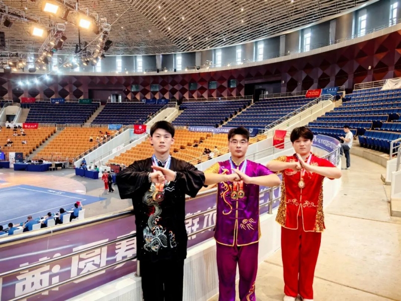 本次比赛由中国学生体育联合会主办,中国学生体育联合会大学武术分会执行,天津市武术协会承办,全国241所高校的2000余名武术精英汇聚于此,共同参与这场全国高校武术竞技的巅峰盛会。该校代表队由副校长张建军任团长,体育学院院长王军红任领队,史新闯博士担任主教练,代表队一行6人参加了本次大赛。最终2023级信息工程学院学生万浩天荣获拳术两枚金牌,对练第四名;2024级现代服务院学生郭嘉良荣获南拳类金牌、咏春拳铜牌、2024级机电工程院学生邓子玉荣获其它拳术类金牌、对练第四名;2021级五年制旅游管理学院学生宋昊霖荣获太极拳第八名。史新闯老师和万浩天同学分别荣获“优秀教练员”和“优秀运动员”称号,学校荣获“体育道德风尚奖”。