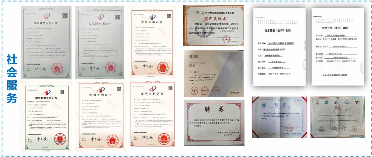 本专业坚持校企合作、产教融合,高质量推进社会服务,教科研成果硕果累累。教学团队主编《机械制图与建模》入选河南省职业教育十四五规划教材,近三年参加河南省高等职业教育教学及职业技能竞赛荣获省级二等奖4项,三等奖2项;指导学生参加各级各类竞赛荣获省级一等奖1项,二等奖2项,三等奖7项。