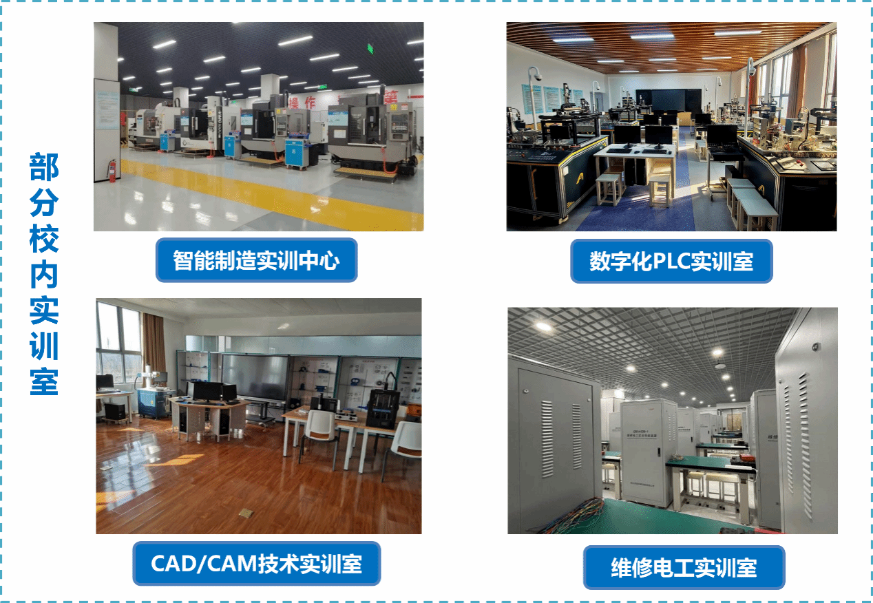 本专业生均实训设备质量、数量居全省同类院校前列,校企合作密切。建有智能制造实训中心、数字化PLC、数控仿真、CAD/CAM技术、维修电工等实训室,有力保障本专业学生的实训教学工作。