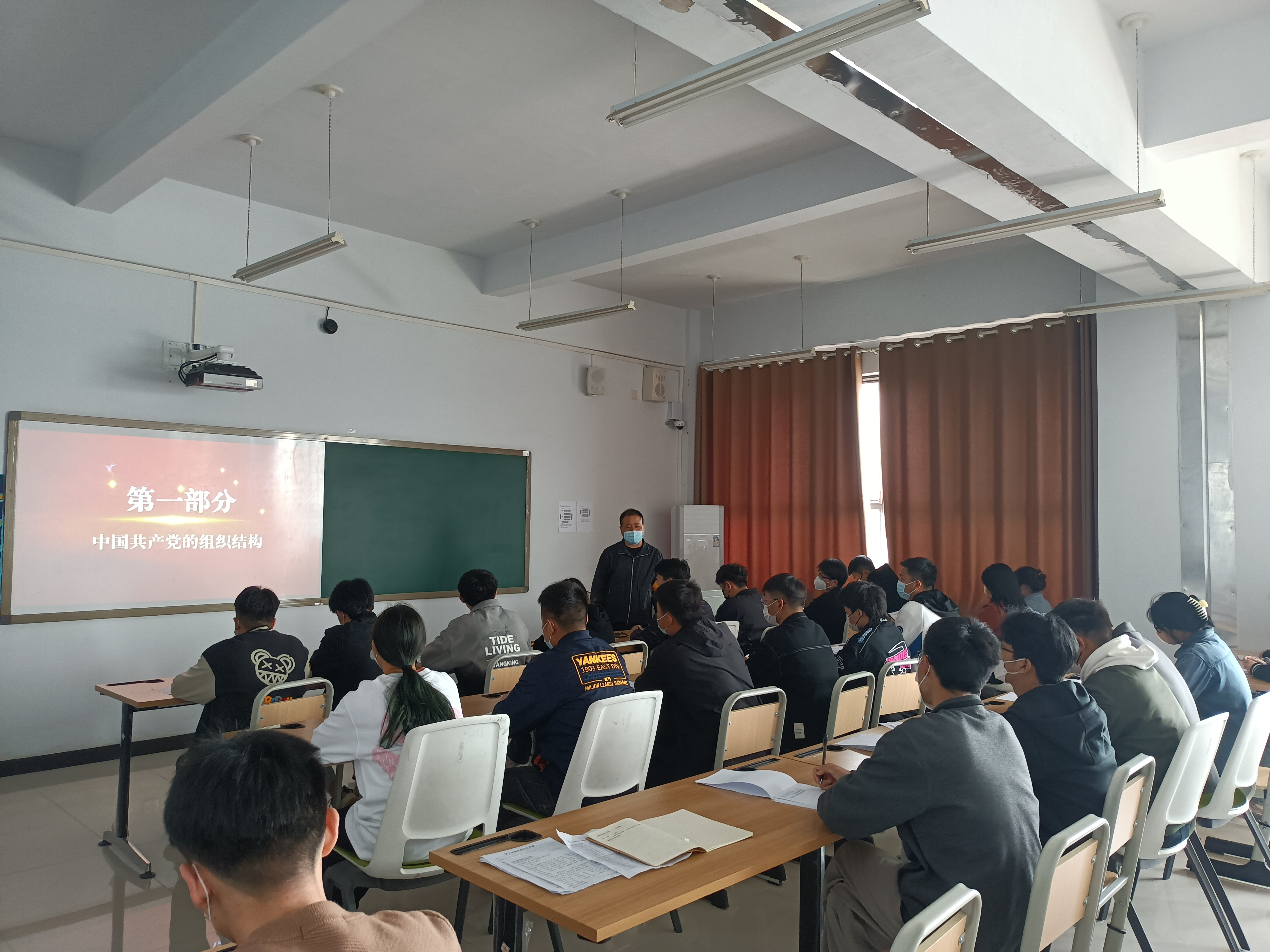课程开始,教研室主任张凯指出了中国共产党的组织制度和党纪党风是严格遵守党的纪律,弘扬党的优良作风,争做合格共产党员。主要从中国共产党的组织结构,中国共产党的组织原则是民主集中制,中国共产党的纪律等方面展开讲述。两个务必:务必使同志们继续保持谦虚谨慎,不骄傲的作风;务必使同志们继续保持艰苦奋斗的作风。党的作风体现着党的宗旨,关系党的形象,关系人心向背,关系着党和国家的生死存亡!