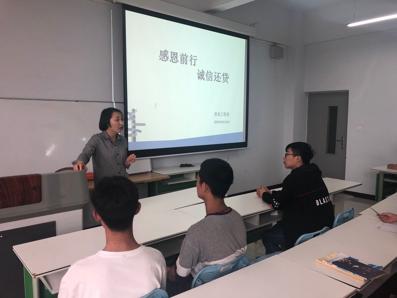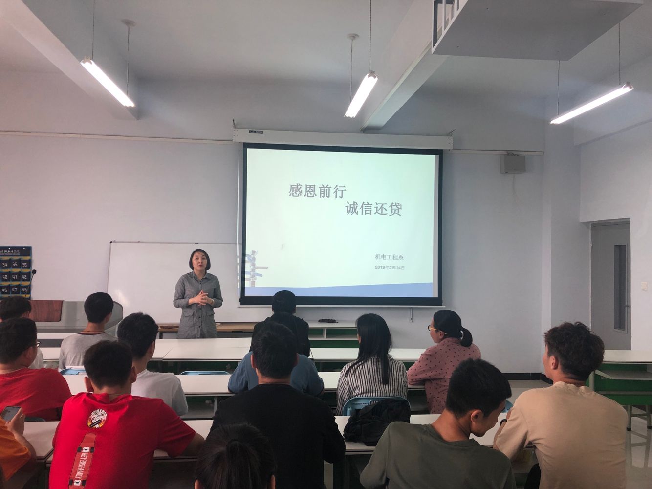 为积极响应学院号召,根据我院助学贷款提前还款的实际情况,增强学生诚信还贷意识和社会责任感,加强大学生诚信感恩教育,引导学生树立求真务实、言行一致的诚信形象,机电工程系于2019年5月14日中午12点在1A教学楼310教室召开“感恩前行 诚信还贷”为主题的动员会。负责我系资助工作的何艳冰老师以及全体受资助学生参加了此次会议。