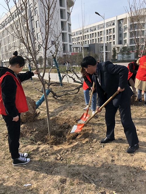 植树节来临之际,为了使同学们更加关注绿化、更加关注环保,唤起同学们植树造林、绿化环境、美化生活的共同意识,2019年3月7日下午3:30,机电工程系团总支青志部带领38名志愿者在我院樱花大道开展了雷锋月志愿植树活动。机电工程系党总支书记段书记,辅导员马彦锋老师和杨彦平老师参加了此次活动。