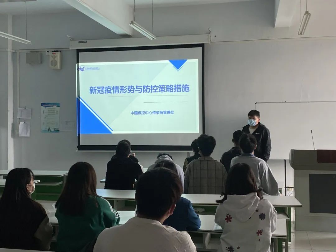 班会伊始,各班团支书再次强调,一定要严格落实防疫要求,按时参加核酸检测并如实报备外出情况;做好防护等。团支书督促学生遵循诚实守信原则,如实报告每日身体健康状况,确保疫情防控工作落到实处。同时强调了如出现发热、非绿码等异常情况的应急处置办法和流程。同时要求学生在校内全程佩戴口罩,勤洗手,多通风,加强锻炼提高抵抗力。团支书在班会中强调,每位学生对于疫情防控都要高度重视,积极配合和遵守防疫相关安排,提升自我安全防范意识,筑牢安全思想防线。各班班主任通过主题班会集中回答了学生关心的课程安排、请假制度调整、应急处置预案等方面问题,引导学生用积极的心态面对疫情,养成良好的卫生习惯,做到安全健康和学习成才两不误。