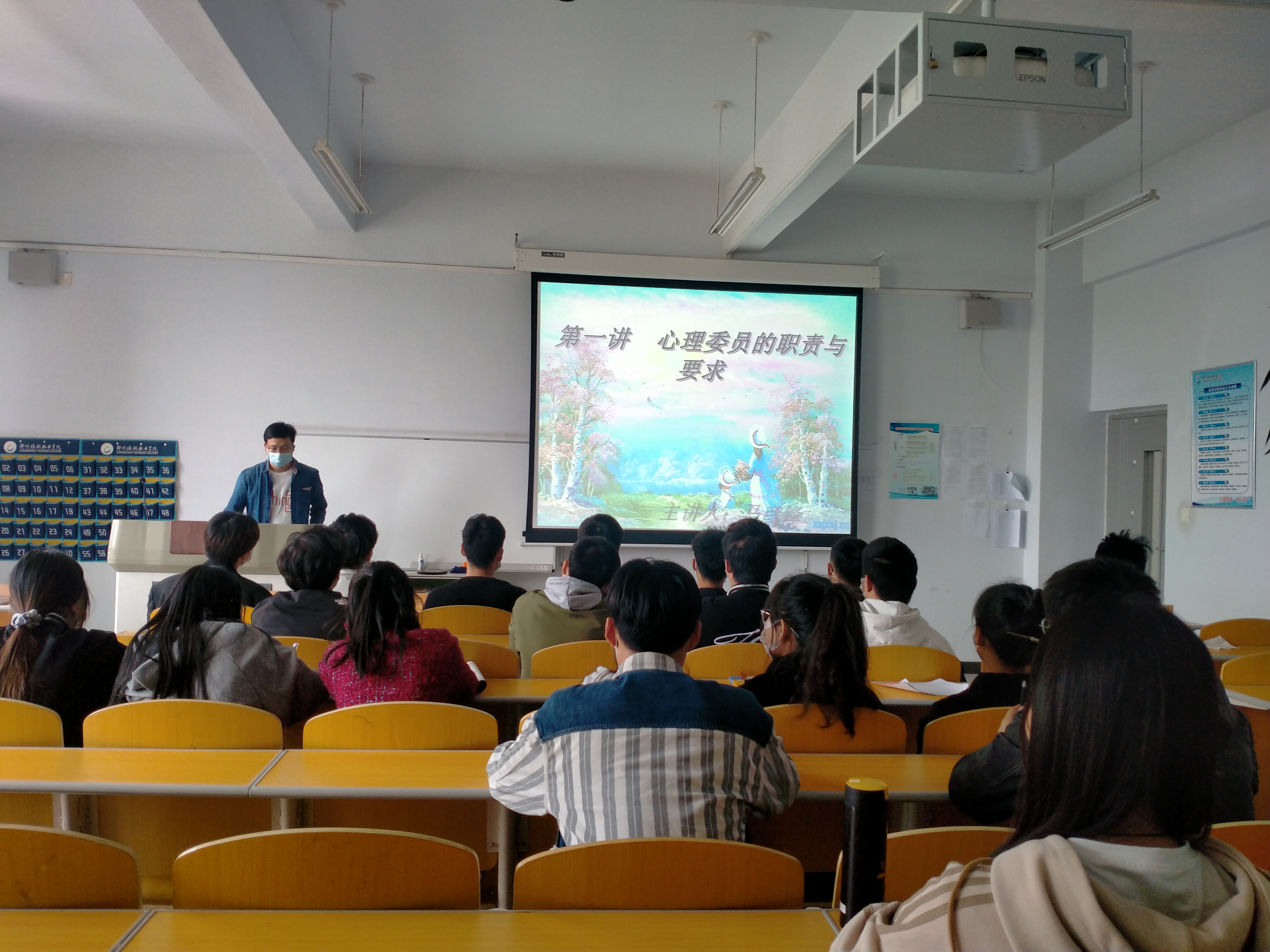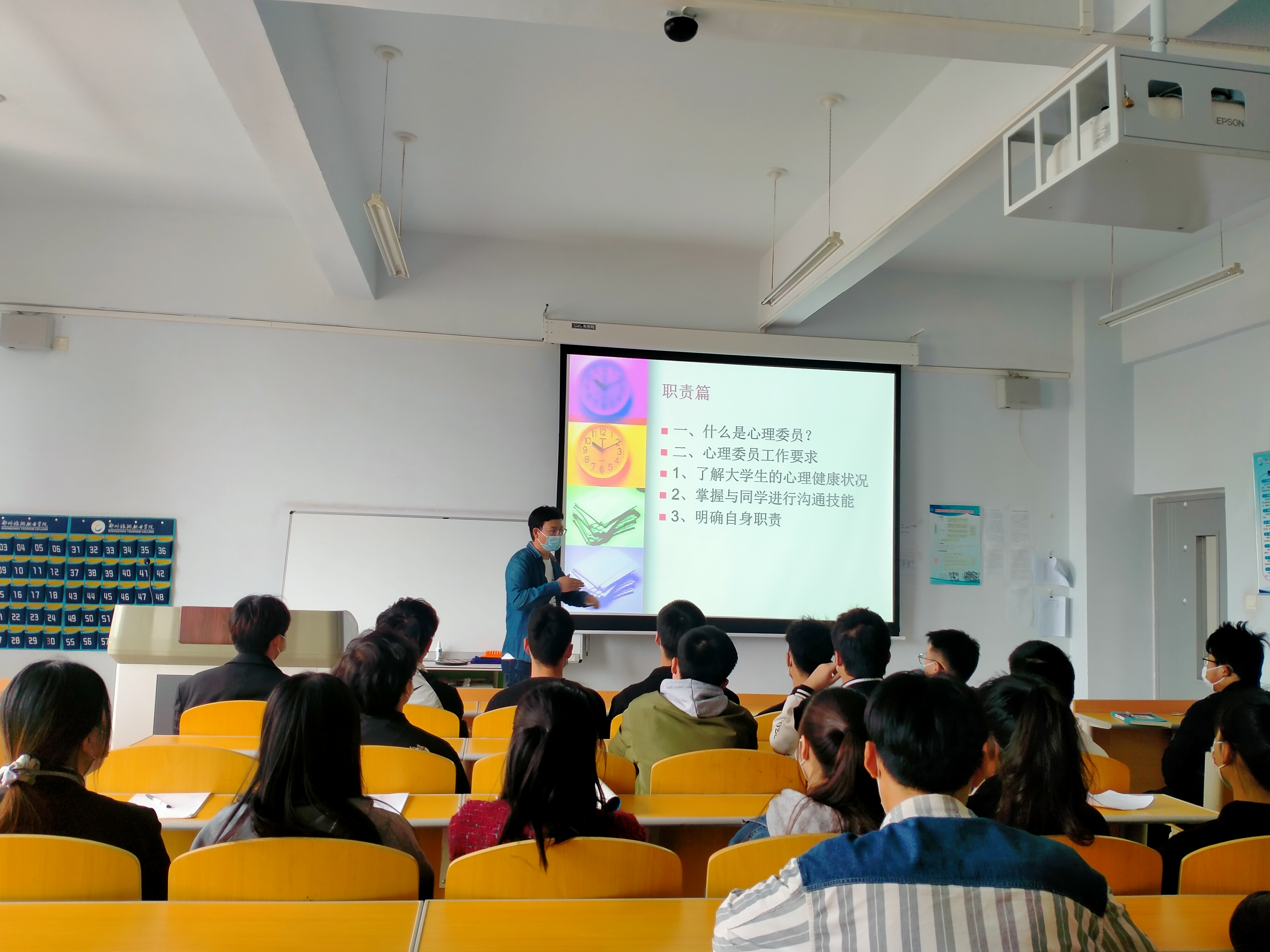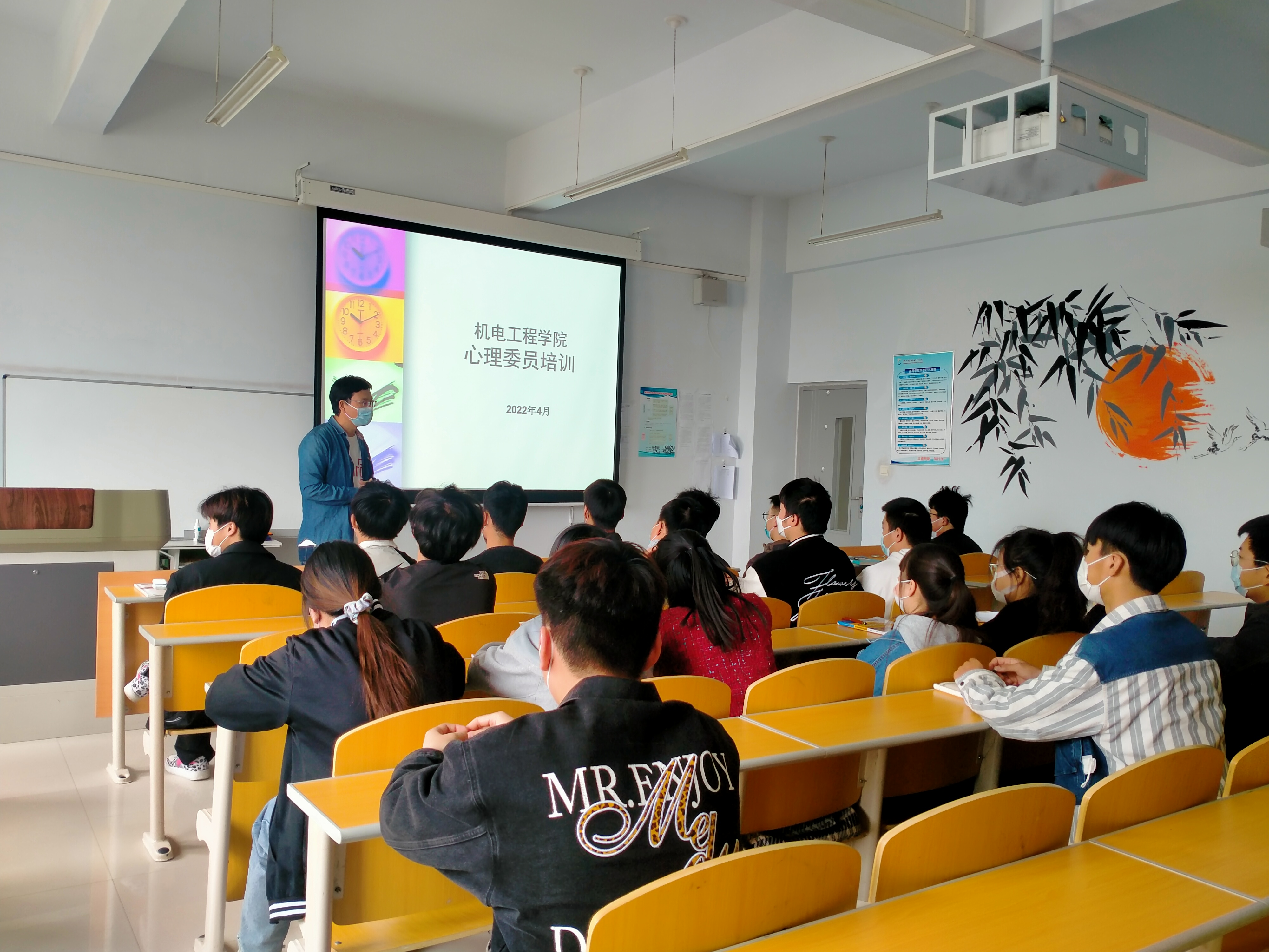 2022年4月15日,机电工程学院二级心理辅导站开展心理委员工作培训,由马彦锋老师主讲,全体在校班级的心理委员参加。