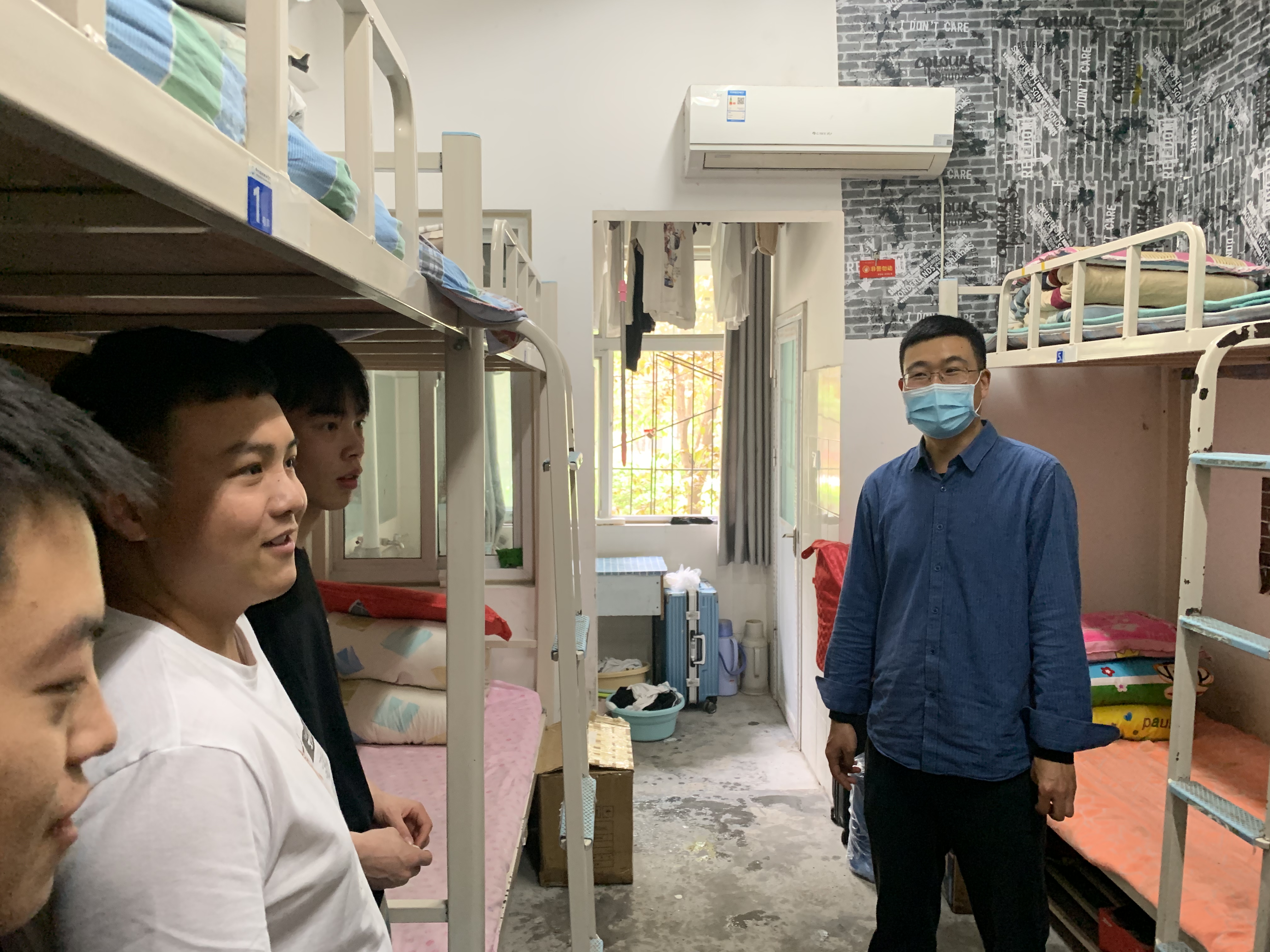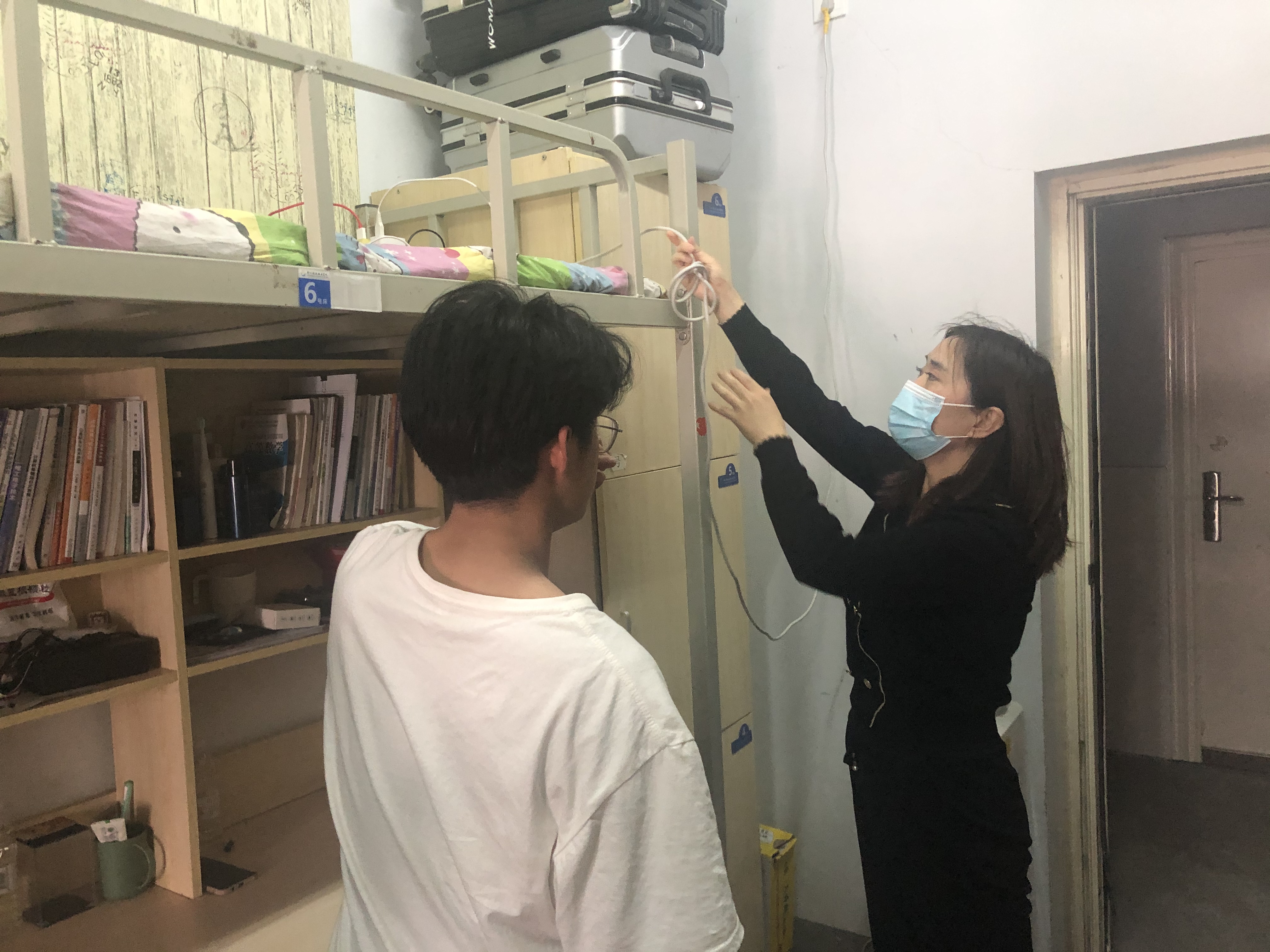 走访检查学生宿舍过程中,各小组逐一对宿舍的安全隐患进行了排查,具体针对大功率用电器问题和宿舍卫生,辅导员在检查的同时,还悉心问候了同学们最近的学习和生活状况。