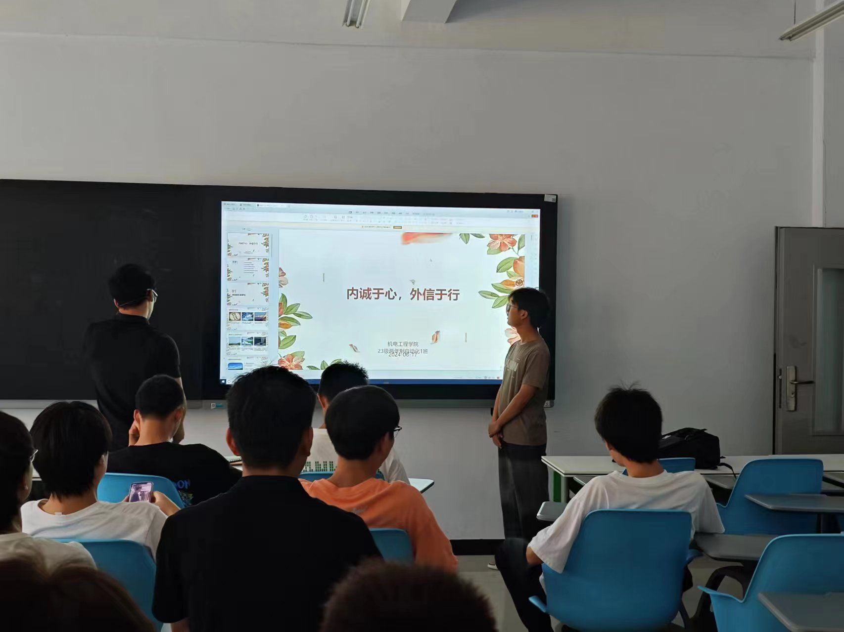 为加强学院学风建设,培养学生诚信意识,引导广大同学认真备考、诚信应考。机电工程学院本周开展“内诚于心,外信于行”主题班会。
