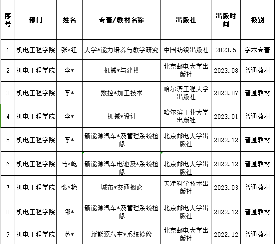 机电工程学院教师2023年著作统计表
