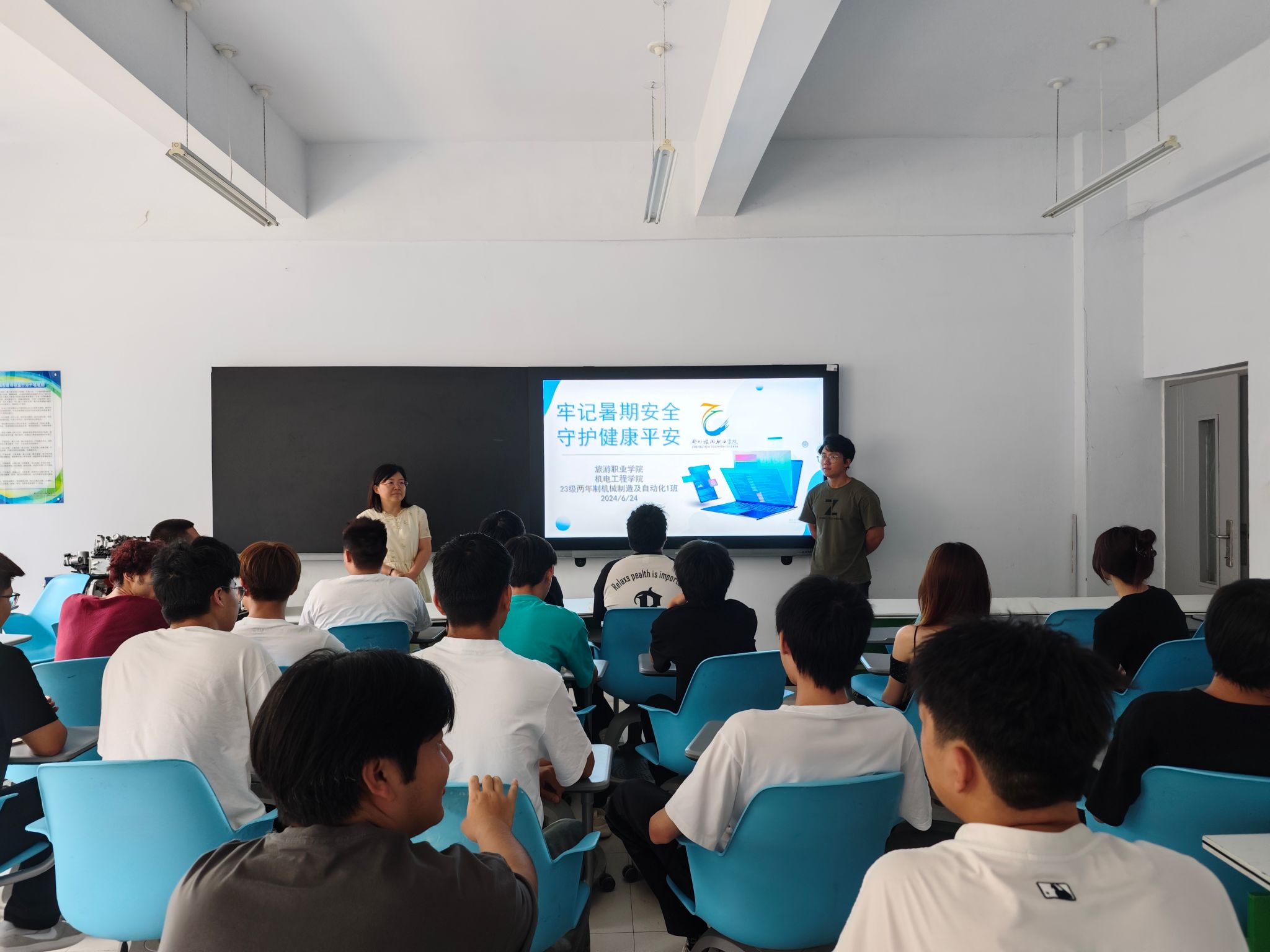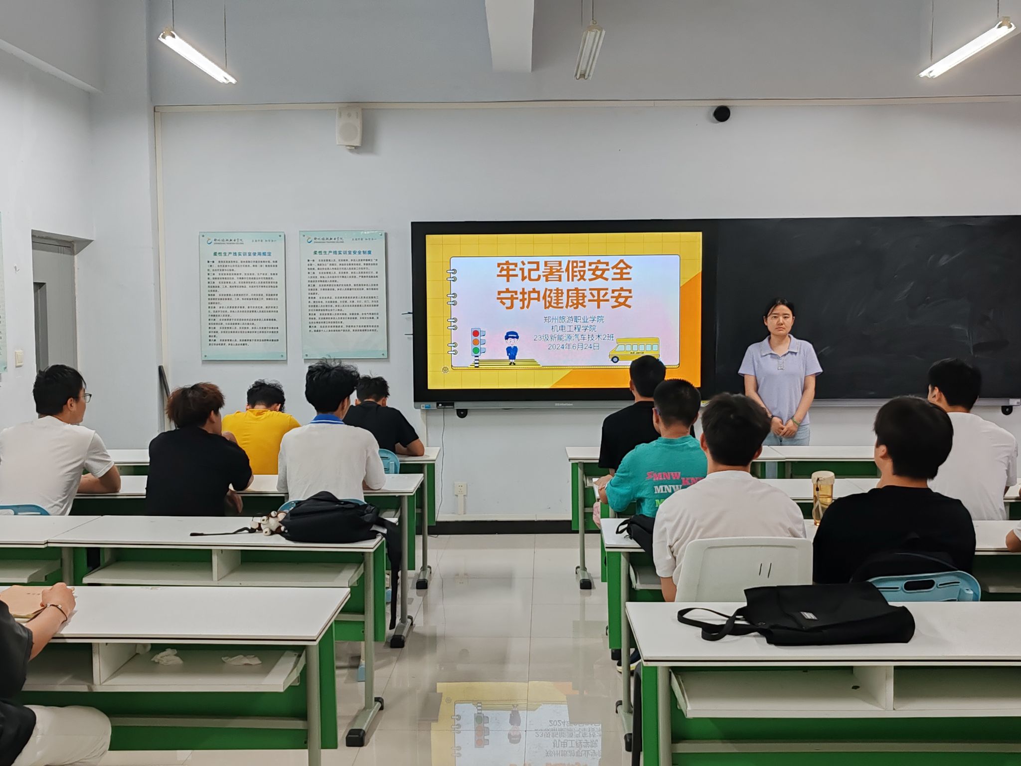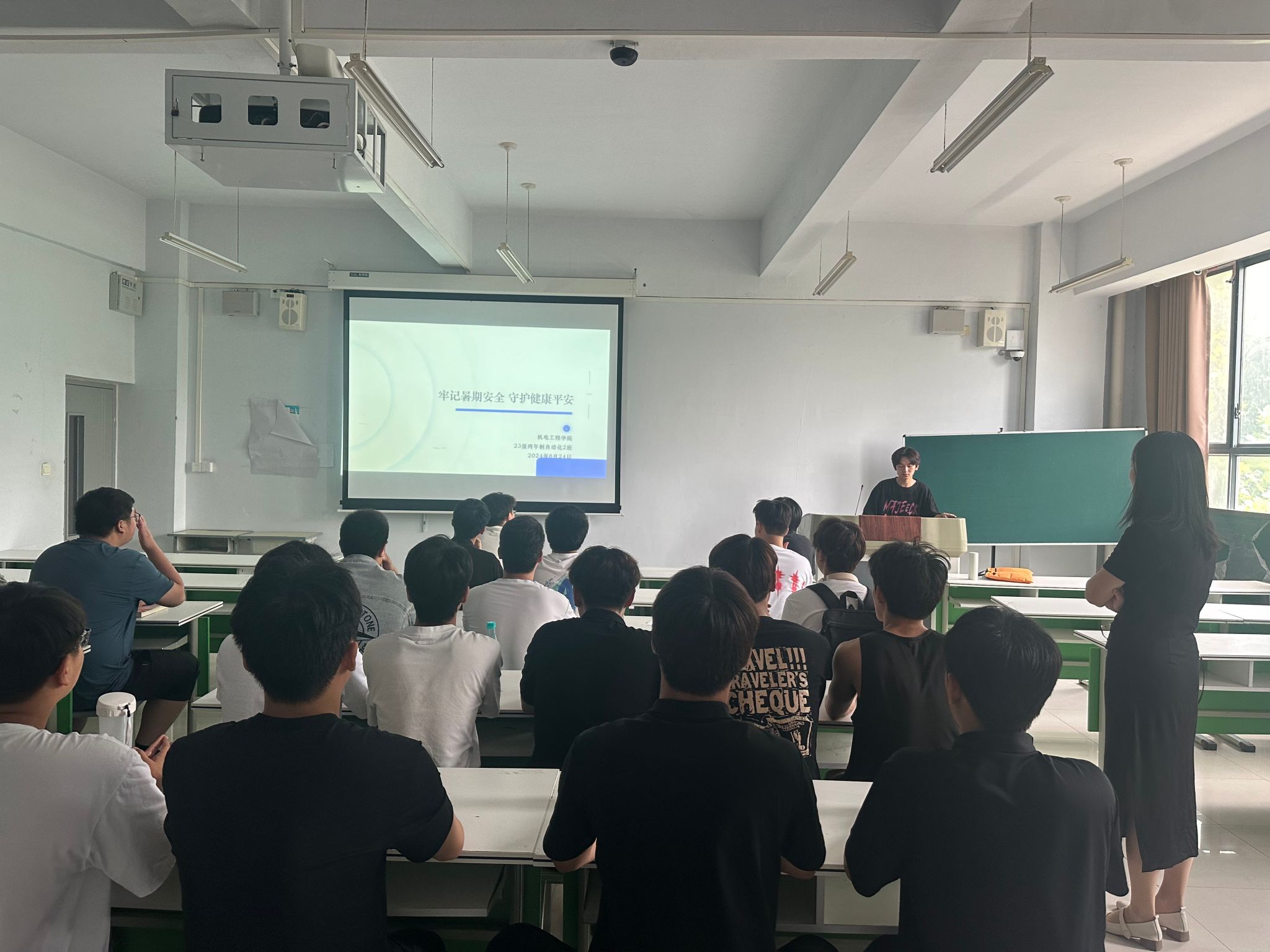 为提高学生们的安全意识,度过一个平安、快乐的假期,机电工程学院本周开展“牢记暑假安全 守护健康校园”主题班会。