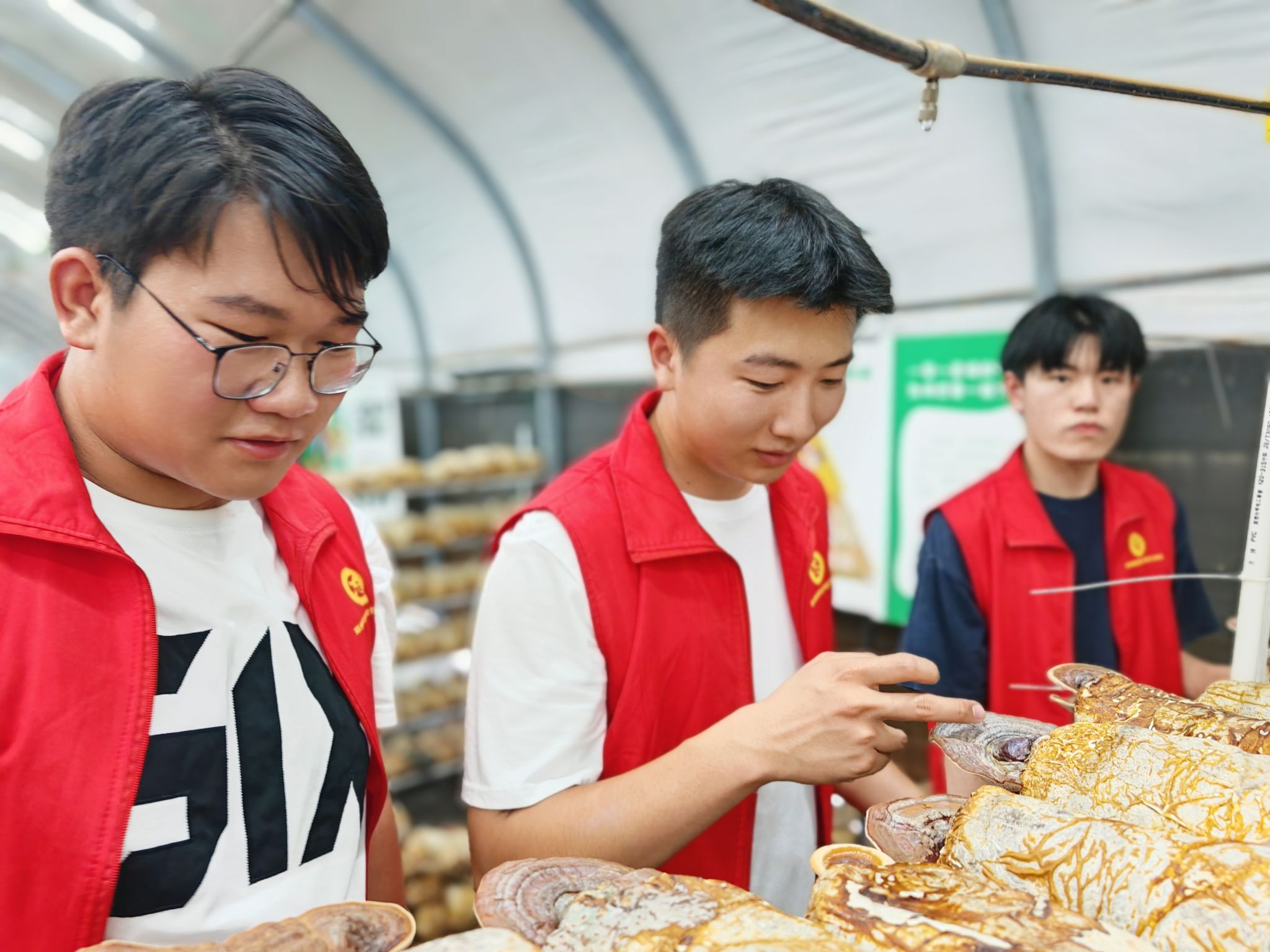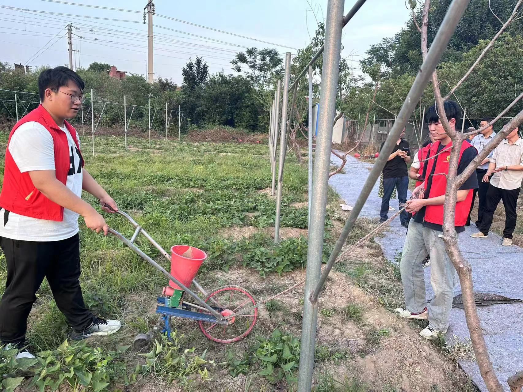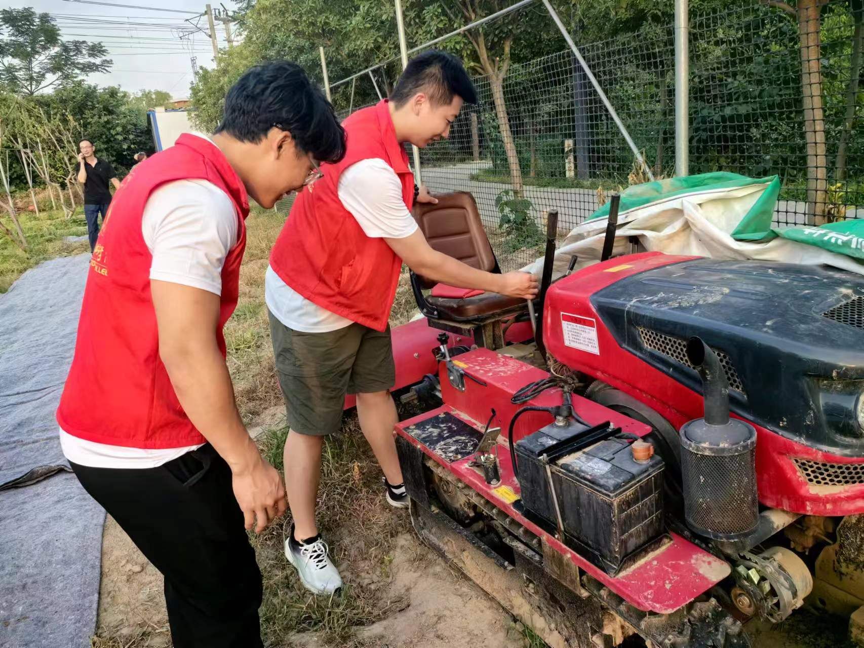仪式结束后,机电工程学院的师生共同参观了葡萄种植园、蘑菇大棚、蔬菜采摘园、园艺花卉园、民间工艺制品馆等特色园区,志愿者们还深入田间体会了播种、除草、采摘、农机检修等实践项目。