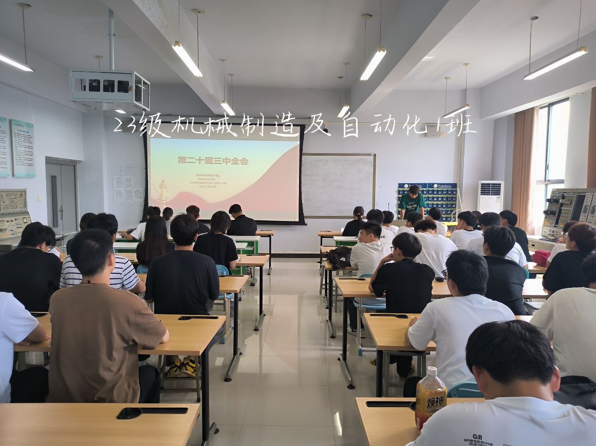 为深入学习贯彻党的二十届三中全会精神,引导学生全面理解和把握全会的重要意义和主要内容,进一步增强学生的政治认同、理论自信和行动自觉,机电工程学院于本周开展“党的二十届三中全会”主题班会。