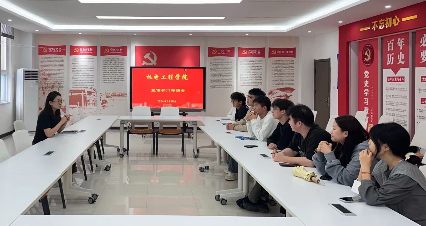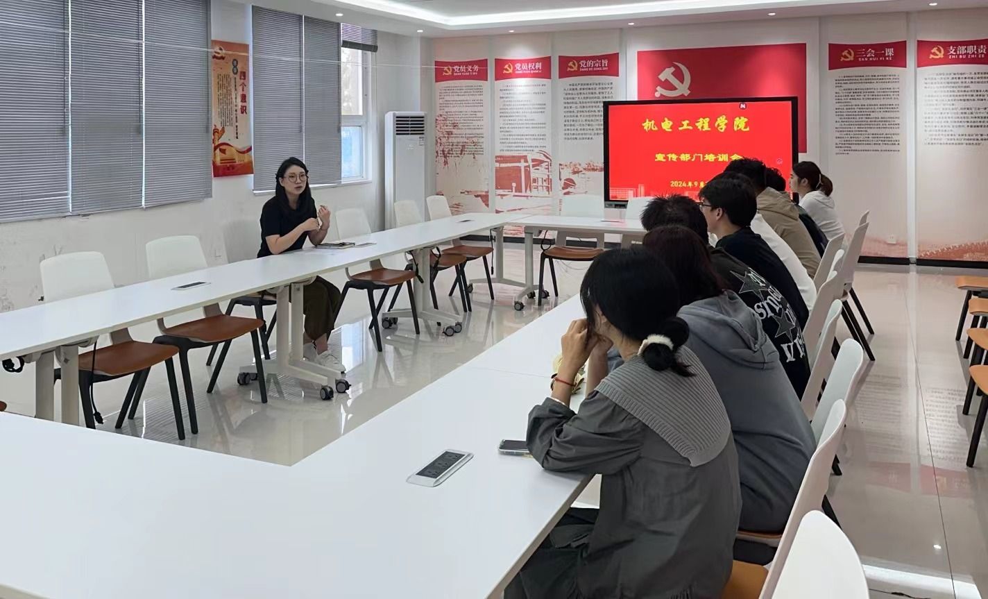 为切实保障学院宣传工作的顺利推进,进一步提升新形势下学院宣传工作质量,提高学生干部的专业素养与业务水平,9 月 18 日下午,机电工程学院宣传部在 1A 教学楼 212 会议室召开宣传部门培训例会。此次会议由陈冉老师主持,团总支、学生会全体宣传人员参会。