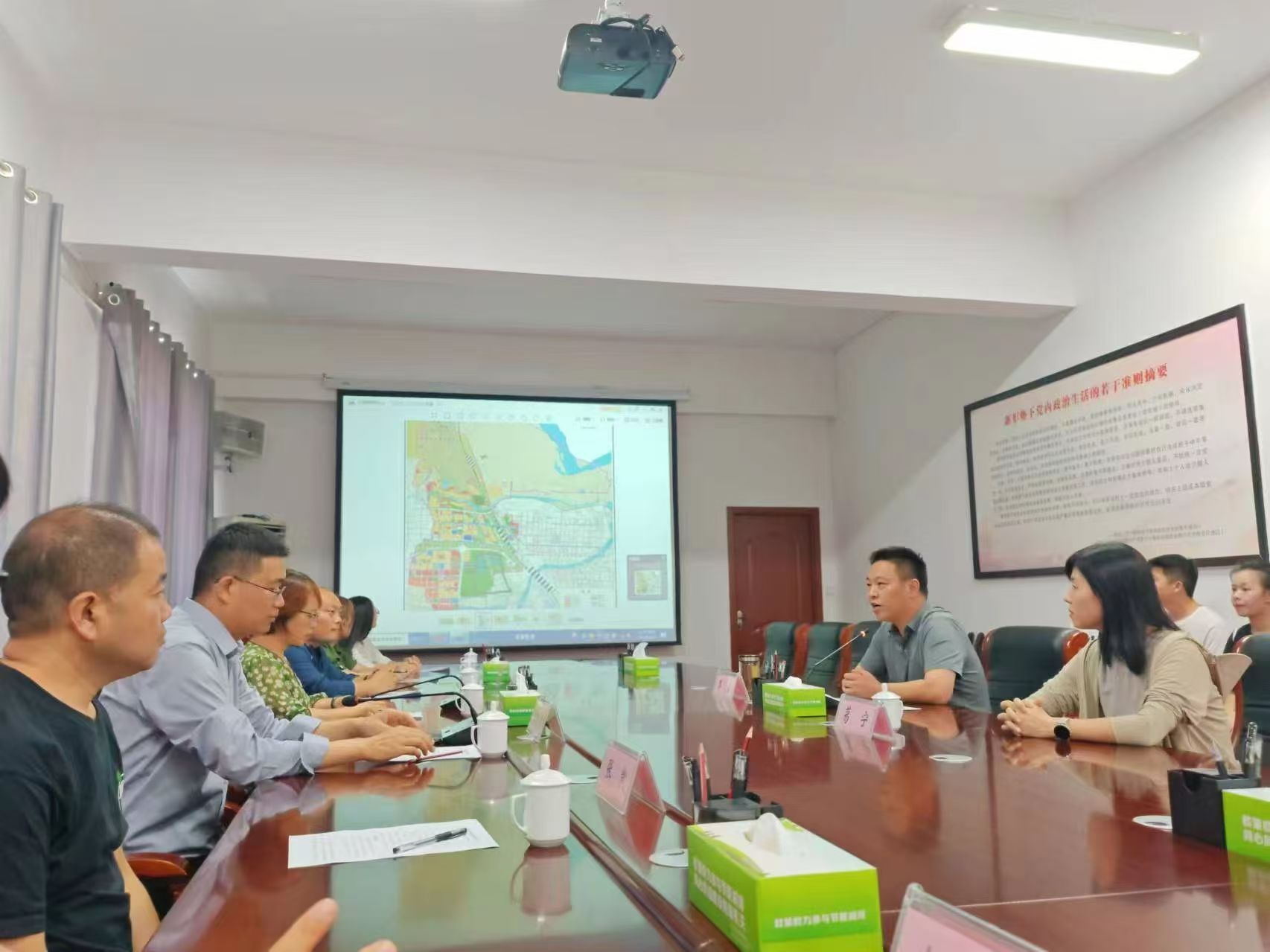 在古荥镇,镇党委书记李勇介绍了古荥镇的历史、未来发展方向。志愿服务队了解古荥镇的美丽乡村建设、产业结构调整,新时代的发展成就等。