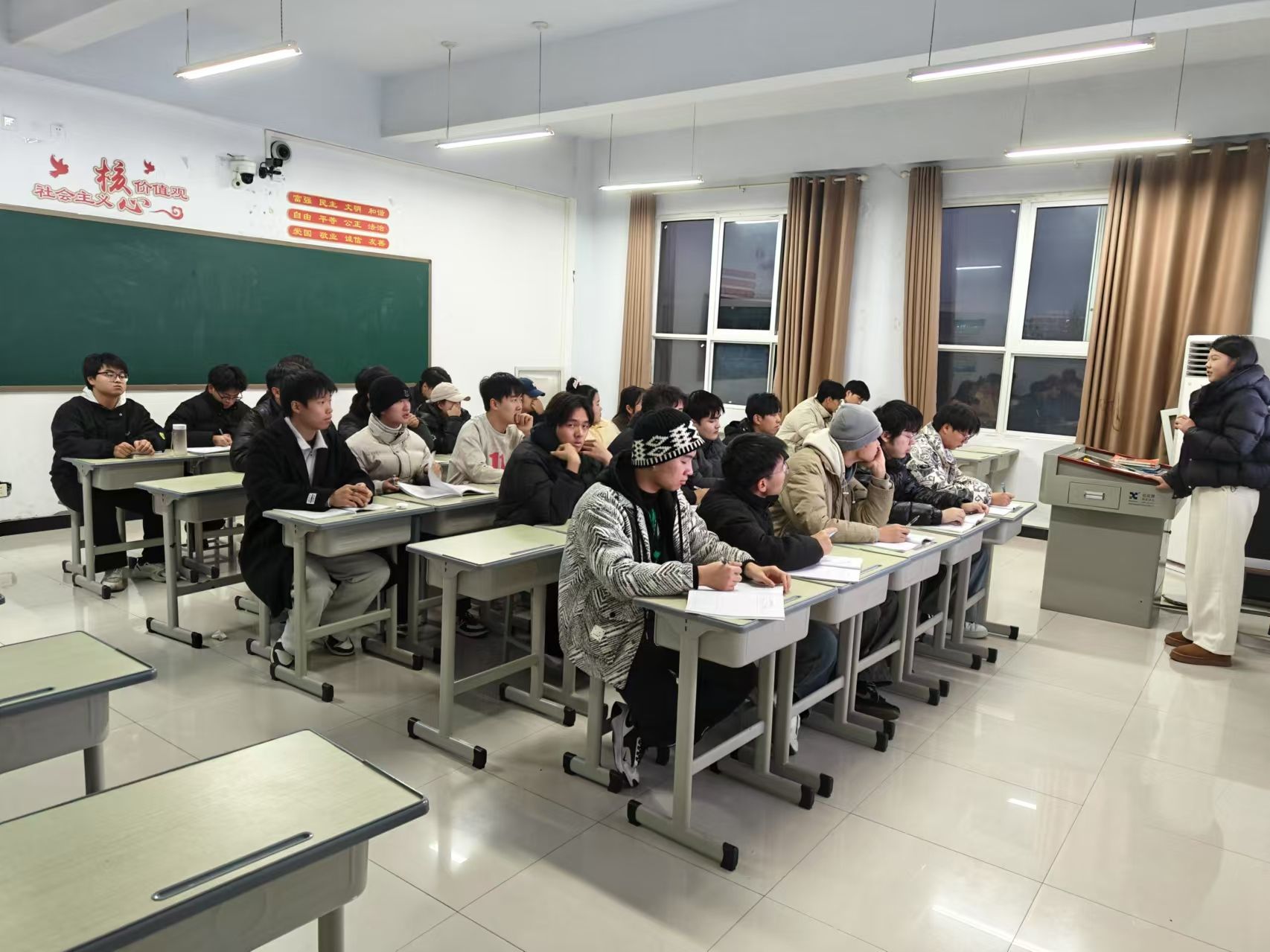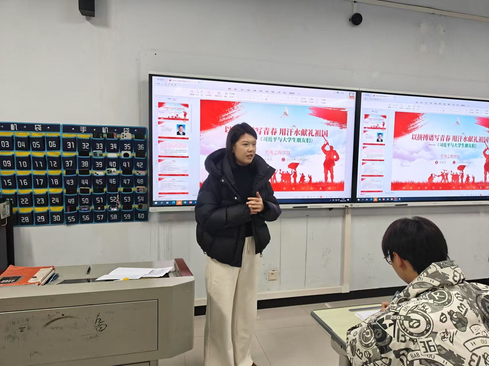 以理论明灯照亮前行之路,以精神滋养培育时代新人,2024年12月24日在教学楼1A312教室,机电工程学院“青马工程”培训班成功举办了一场以“以拼搏谱写青春,用汗水献礼祖国”为主题的培训活动。本次活动由辅导员史思念主讲。