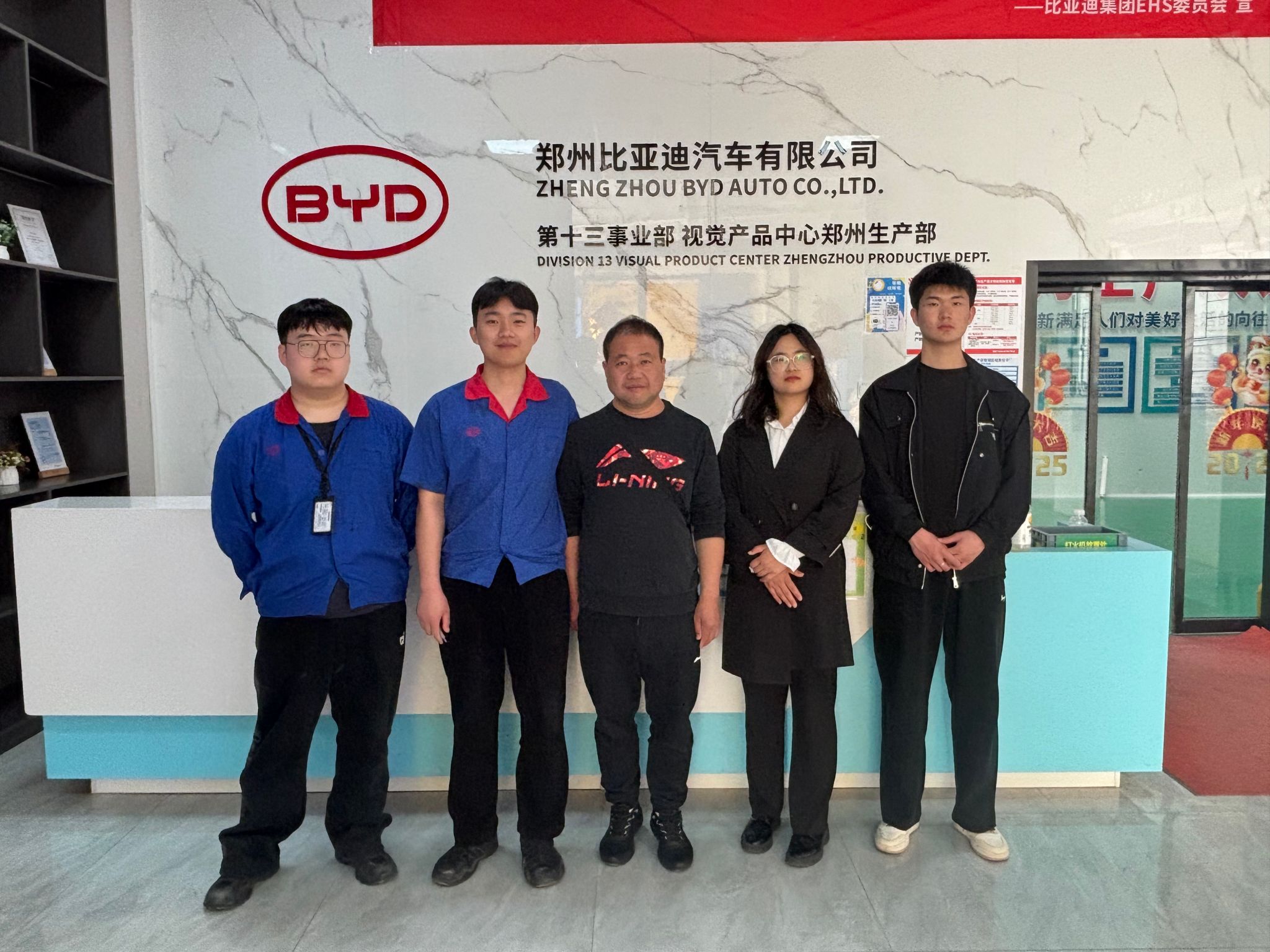 为深化产教融合,精准对接企业用人需求,助力学生高质量就业。2025年3月27日,机电工程学院机电一体化技术专业教师在教研室主任张凯的带领下走访郑州比亚迪汽车有限公司及郑州宏拓精密工具有限公司,开展企业调研并探访在岗毕业生,为即将就业的应届毕业生搭建就业桥梁