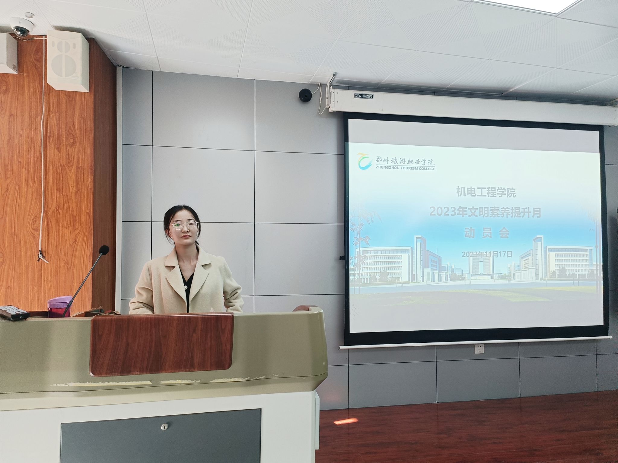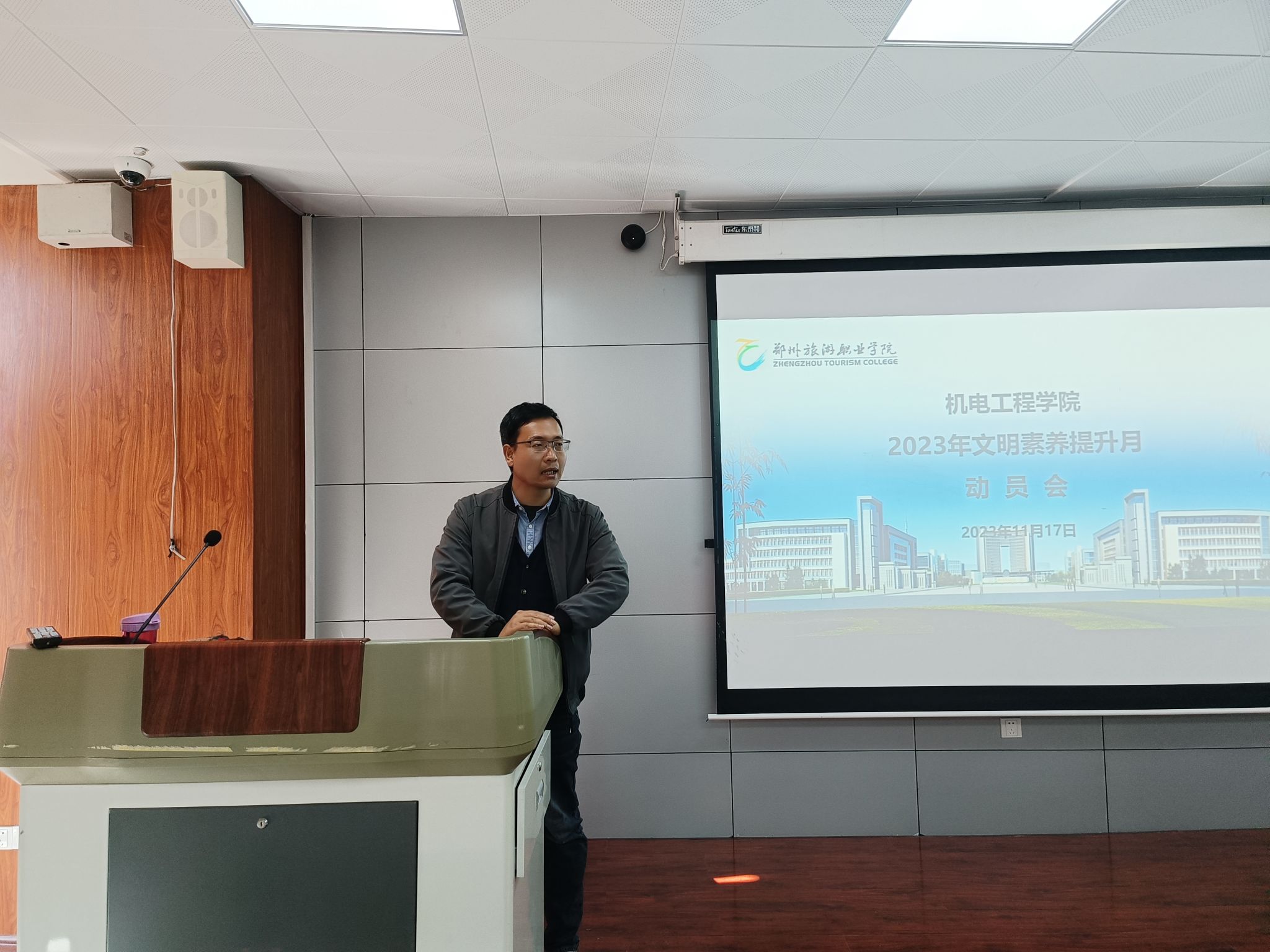 为了进一步加强和提升我院学生日常管理和思想教育工作,创建文明和谐校园,促进学生成长成才,让学生从自身做起,从规范行为着手,达到习惯成自然,自然成文化的目标,成长为新时代的好青年。机电工程学院于11月17日下午在1A313教室开展大学生文明素养提升月动员会,会议由郭沙沙老师和马彦峰老师主持召开,22、23级全体班长和团支书参与。