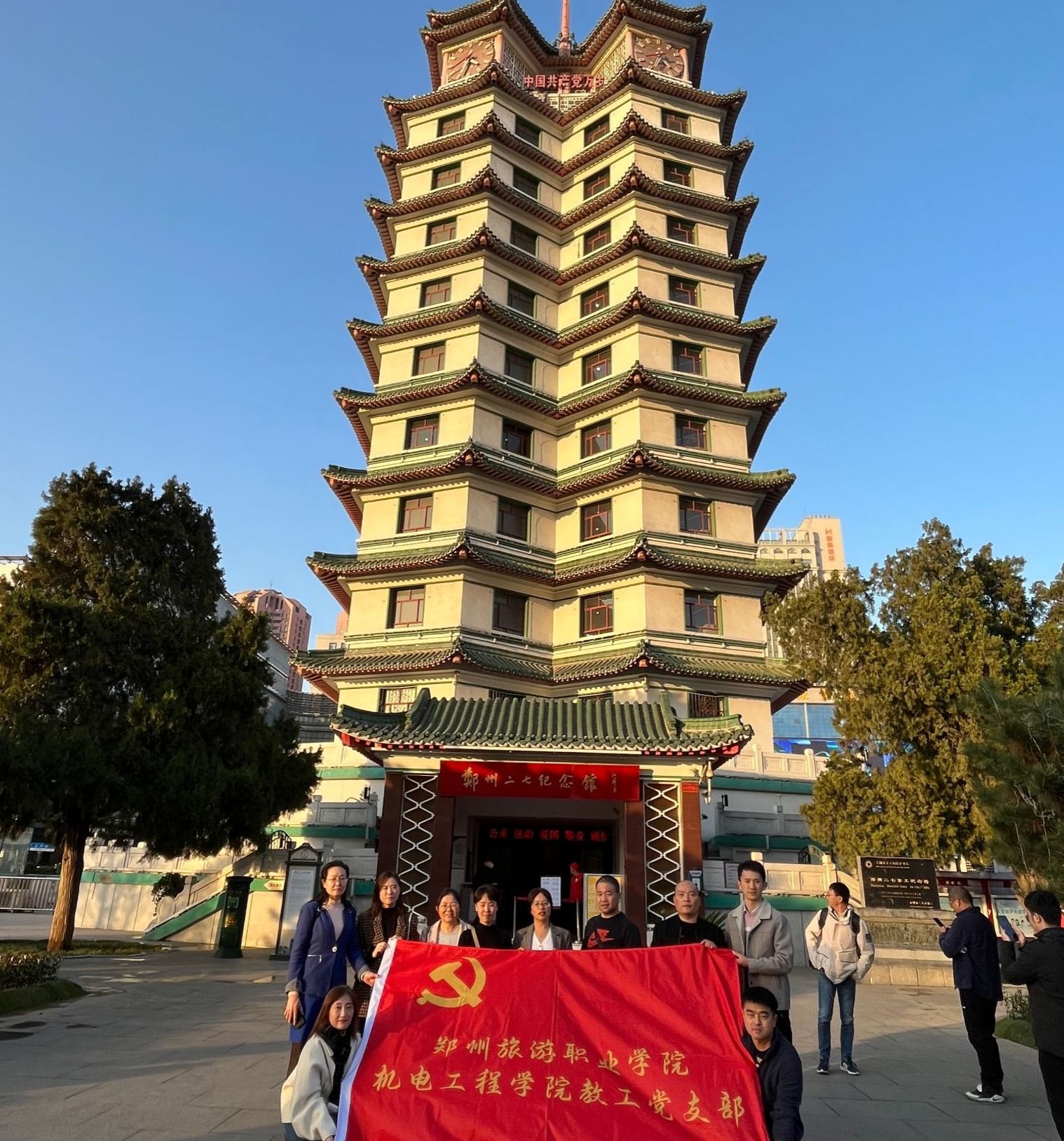 为深入开展学习贯彻习近平新时代中国特色社会主义思想主题教育,缅怀革命先烈,重温红色精神,机电工程学院教工党支部全体党员教师于2023年11月22日下午,到二七纪念塔开展主题党日活动。