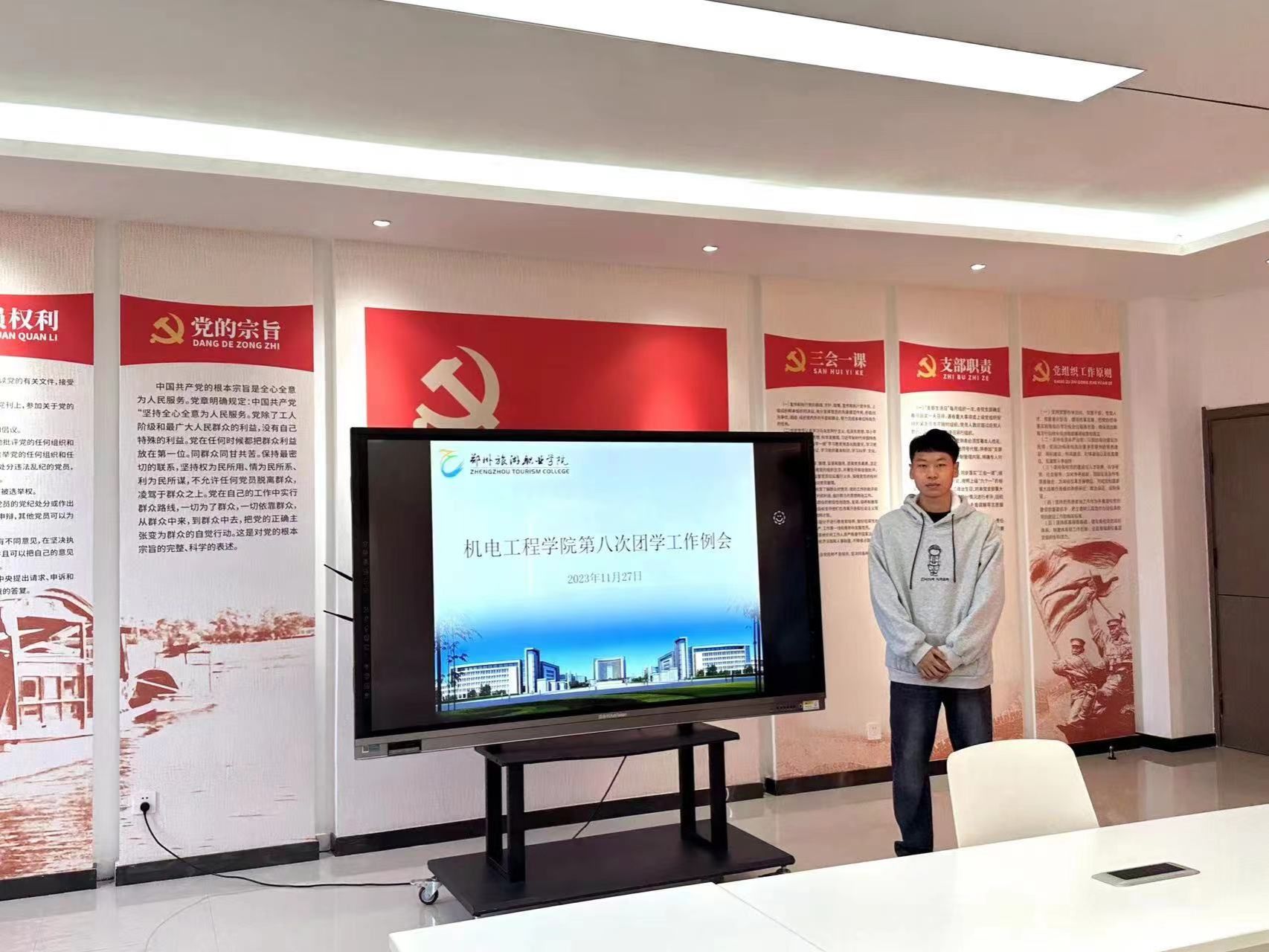 机电工程学院团总支于11月27日上午在1A教学楼212会议室召开本学期第八次团学工作例会,会议由团总支书记马彦锋主持,辅导员张冰老师,李倩秋老师、学院学生会、团总支各部门负责人参会。