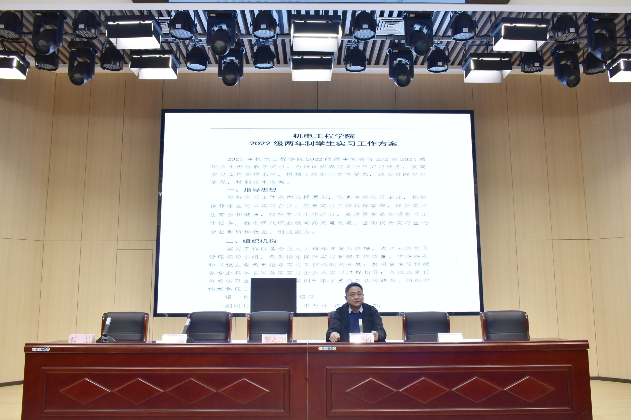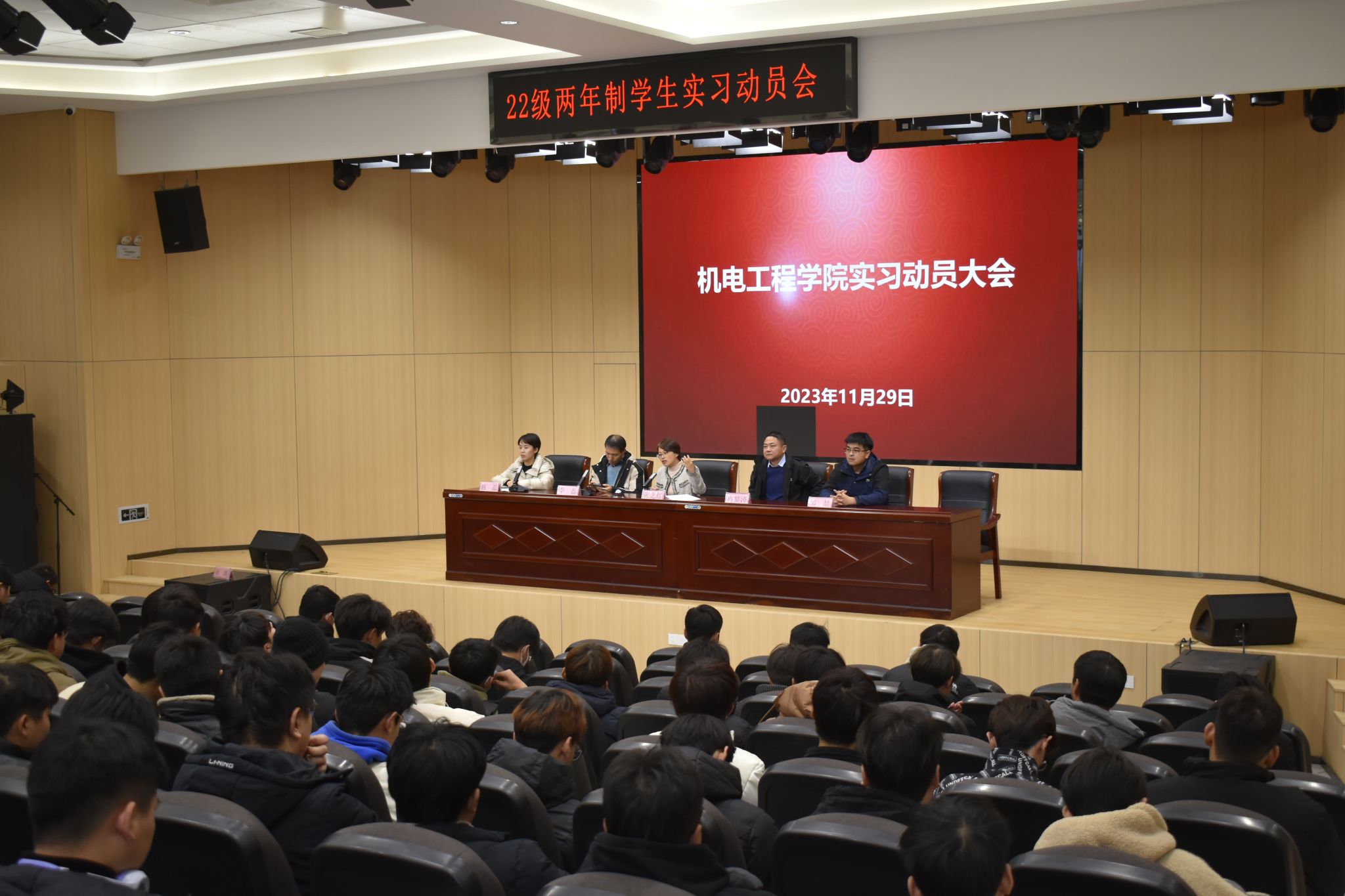 为帮助学生明确实习目标,增强实习意识,保障实习工作的顺利进行,机电工程学院于11月29日下午在1A报告厅召开22级两年制学生实习动员会。此次动员会由学院办公室主任韩晶主持,院长张之红、实习实训干事冉黎涛、教研室主任李磊、邹喆出席,全体22级两年制学生参加。