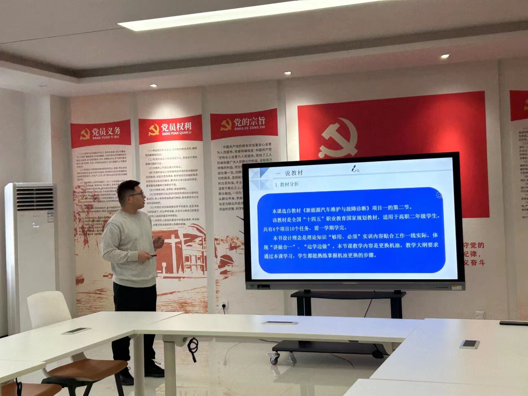经各教研室选拔推荐,5名教师参加本次比赛。比赛中,参赛教师在15分钟内结合自己的专业特色,围绕参赛课程进行说课,展示如何依据专业和课程特点,深入挖掘课程蕴含的思想政治教育元素,如何将课程思政有机融入课堂的教学整体设计、教学实施过程、实习实训过程等方面,实现知识传授、能力培养、价值塑造“三位一体”的教学目标。整个比赛过程中教师们精神饱满,教态自然,娴熟自信,充分展示了较高教学水平和良好的教学素养。