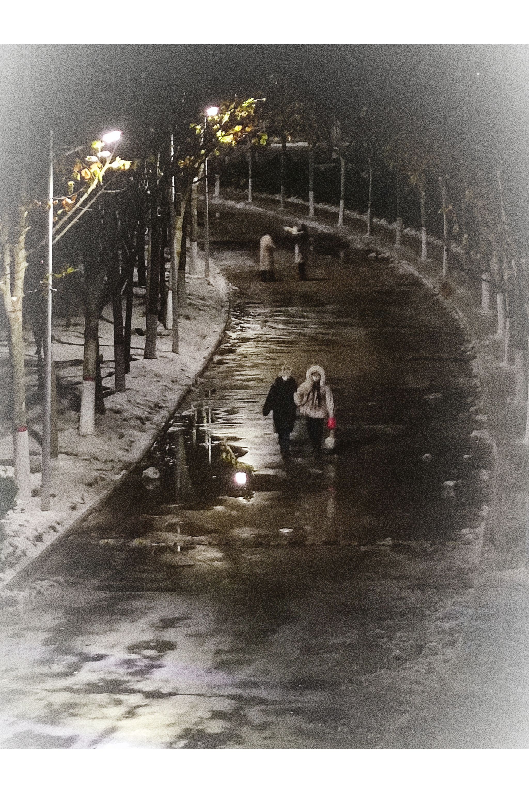 作品描述:雪景的美丽是短暂而宝贵的。在灯光的照耀下,雪地闪