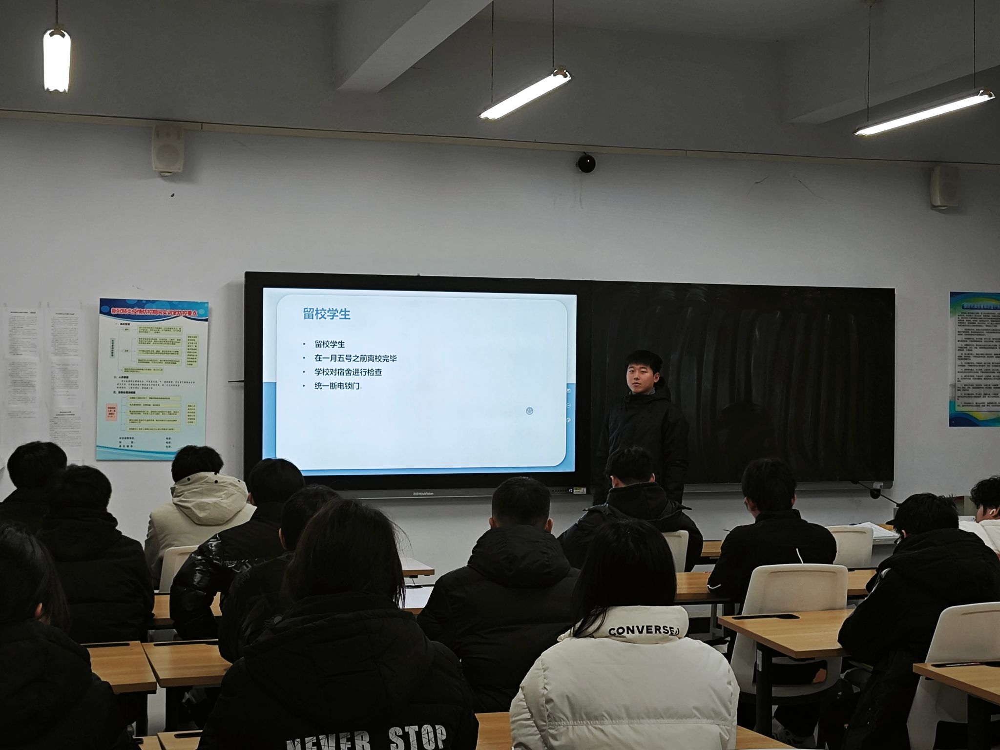 会上,重点强调了离校期间学生安全及个人文明意识。就离校的具体流程和注意事项进行了详细说明,提醒各班生活委员认真传达本次会议内容,要求同学们做到安全离校、文明离校,强化好安全防护意识,端正文明离校观念,安全、文明、有序离校。