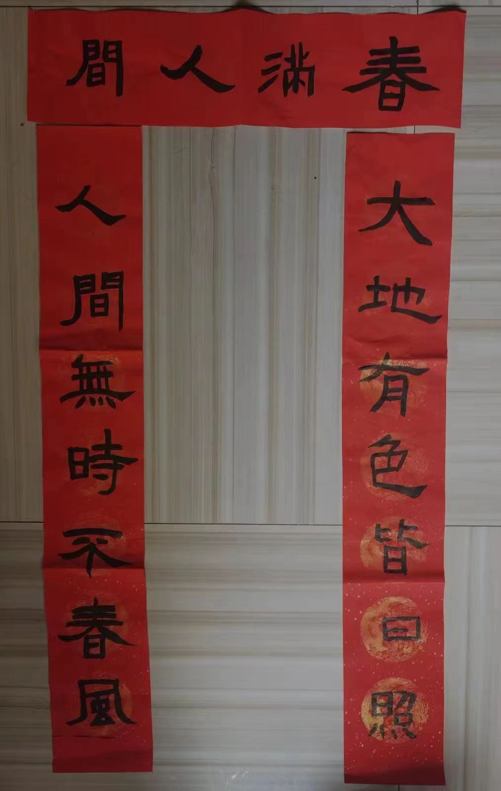 “去旧迎新贴春联,洗去一年风和尘;鸿运当头吉祥兆,红红火火是来年”。春节临近,人们会在家门口贴上写有祝福话语的春联,以示对新一年的美好期许。