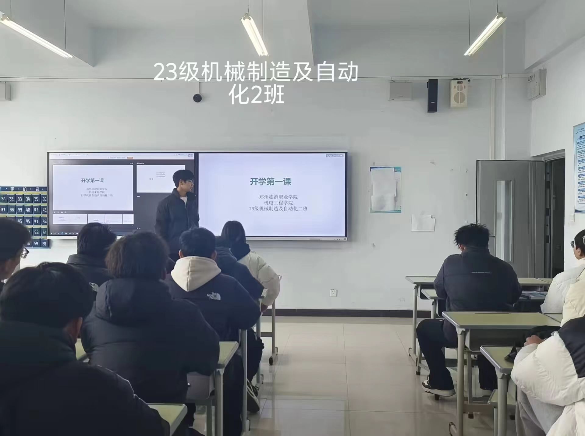 新学期,新起点,为了让同学们尽快适应学校生活,进一步推进学校安全教育工作的开展。机电工程学院召开“开学第一课”主题班会。