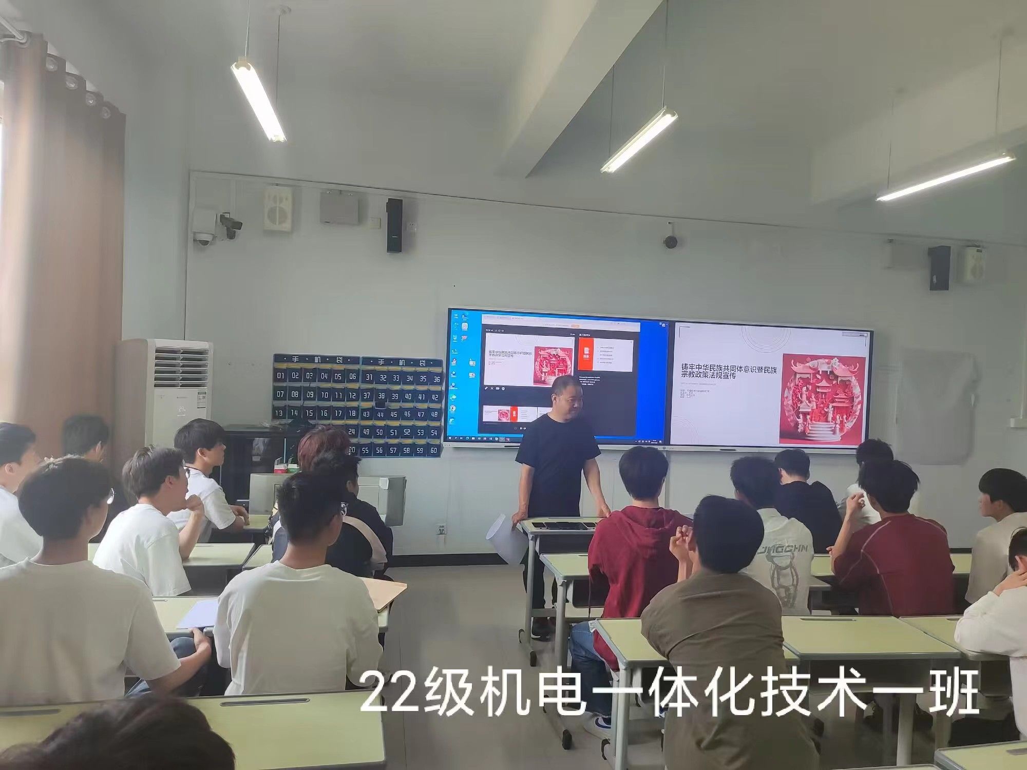 为深化学生对中华民族共同体意识的理解,加强民族宗教政策法规的宣传普及,促进各民族同学之间的交流与合作,机电工程学院于4月22日组织召开“铸牢中华民族共同体意识暨民族宗教政策法规宣传”主题班会。