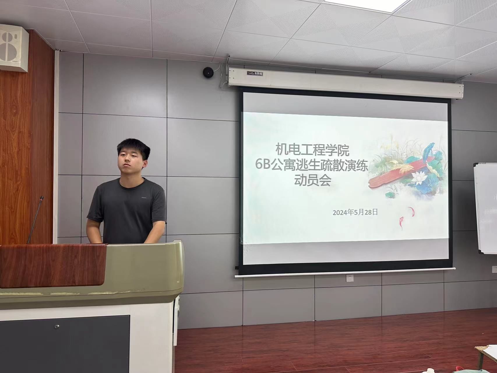 为进一步强化全院师生的防火减灾意识,保证全院师生在突发火灾时快速、有序、高效地应急避险和疏散,提高学生的自救自护和逃生应变能力,机电工程学院于5月28日下午在1A313开展6B公寓逃生疏散演练动员会。本次动员会由生活部部长赵飞翔主持,各寝室寝室长参加。
