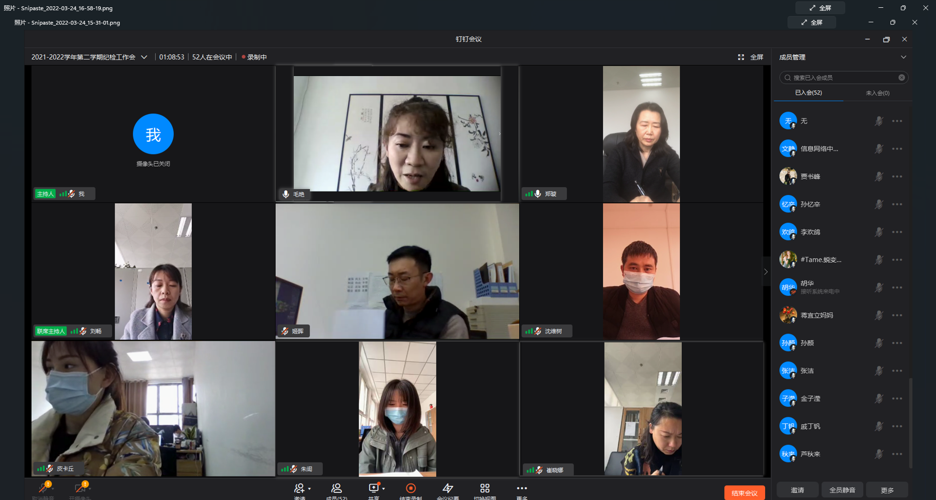 2022年3月24日下午,pp电子召开2021—2022学年第二学期纪检工作会并进行纪检干部培训,根据防疫要求,本次会议采取网络会议的形式进行。纪委书记毛艳出席会议并讲话。纪委委员、党总支纪检委员、支部纪检委员、部门纪检干事参会。会议由纪委副书记郑璇主持。