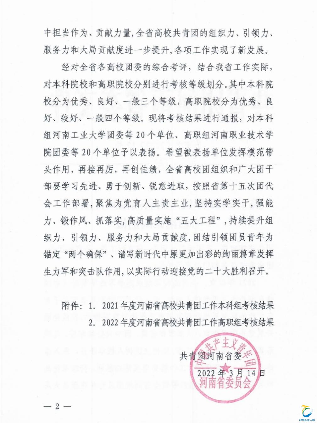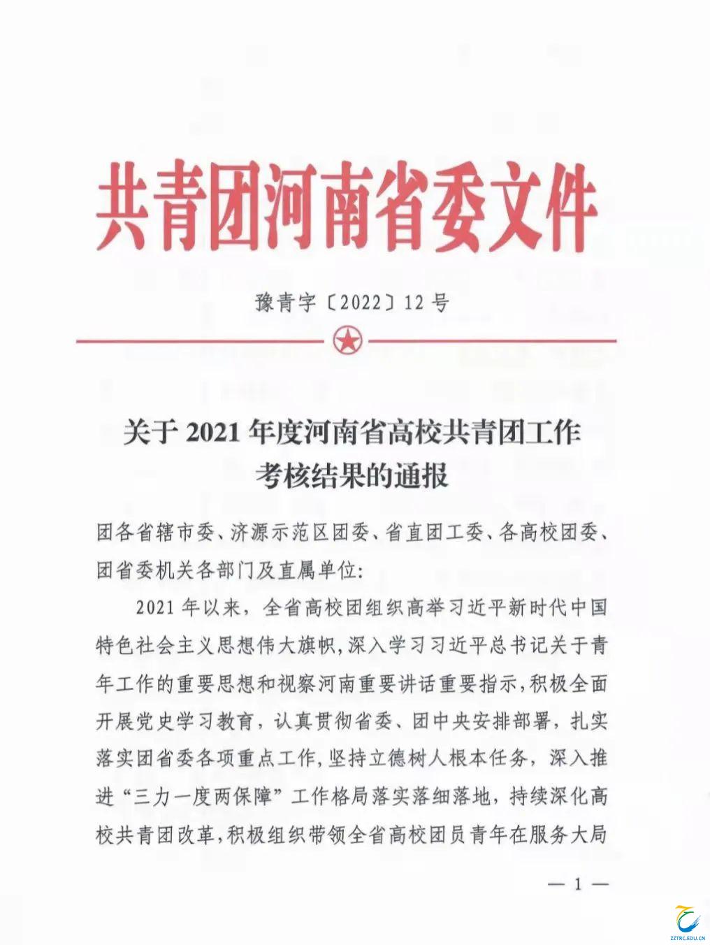 近日,共青团河南省委下发文件,《关于2021年度河南省高校共青团工作考核结果的通报》,pp电子共青团工作考核等级结果为“优秀”(高职组)。接下来,pp电子以此次2021年考核等级“优秀”为契机,深入学习贯彻团省委2022年全省高校共青团工作会议精神,在学校党委的坚强领导下,围绕学校中心工作,紧盯为党育人、为国育才目标,聚焦高校共青团工作三大职能,提升共青团的“三力一度”,扎实推进pp电子共青团工作高质量发展。