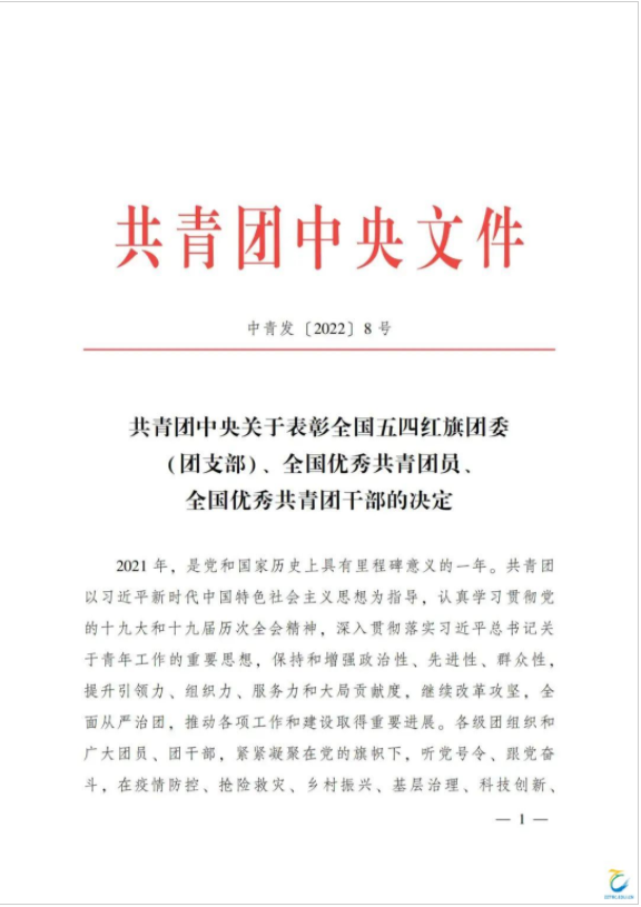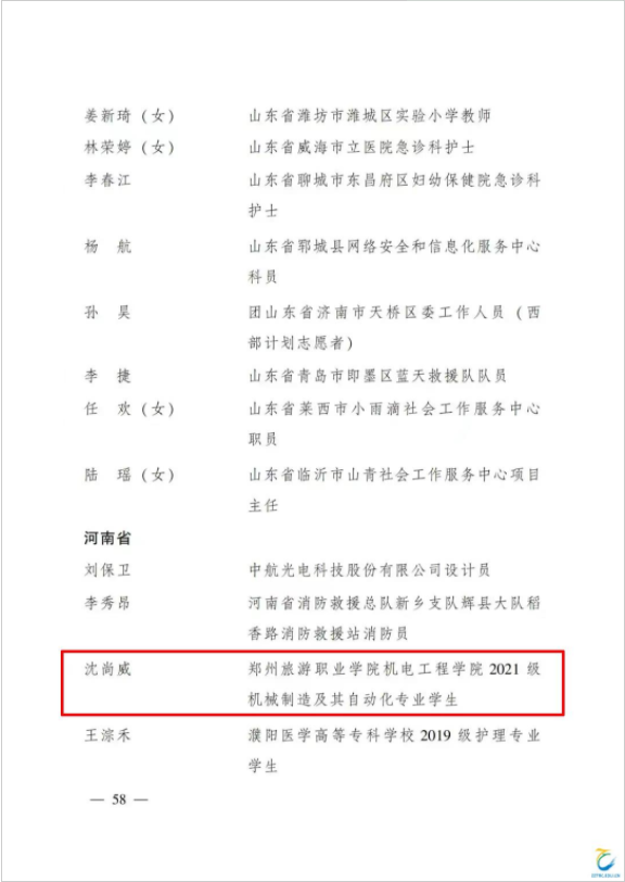 喜报!机电工程学院沈尚威同学获全国优秀共青团员称号
