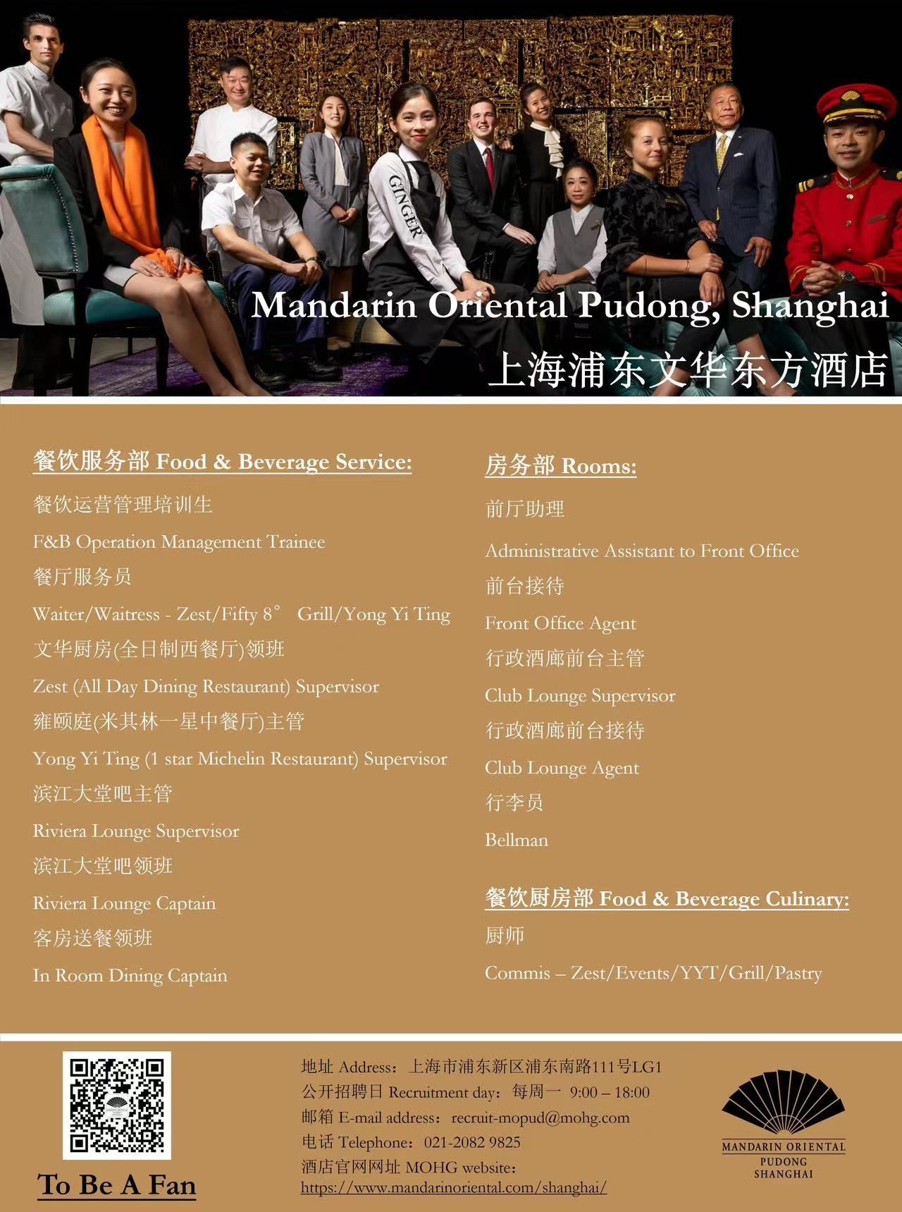 上海浦东文华东方酒店招聘信息