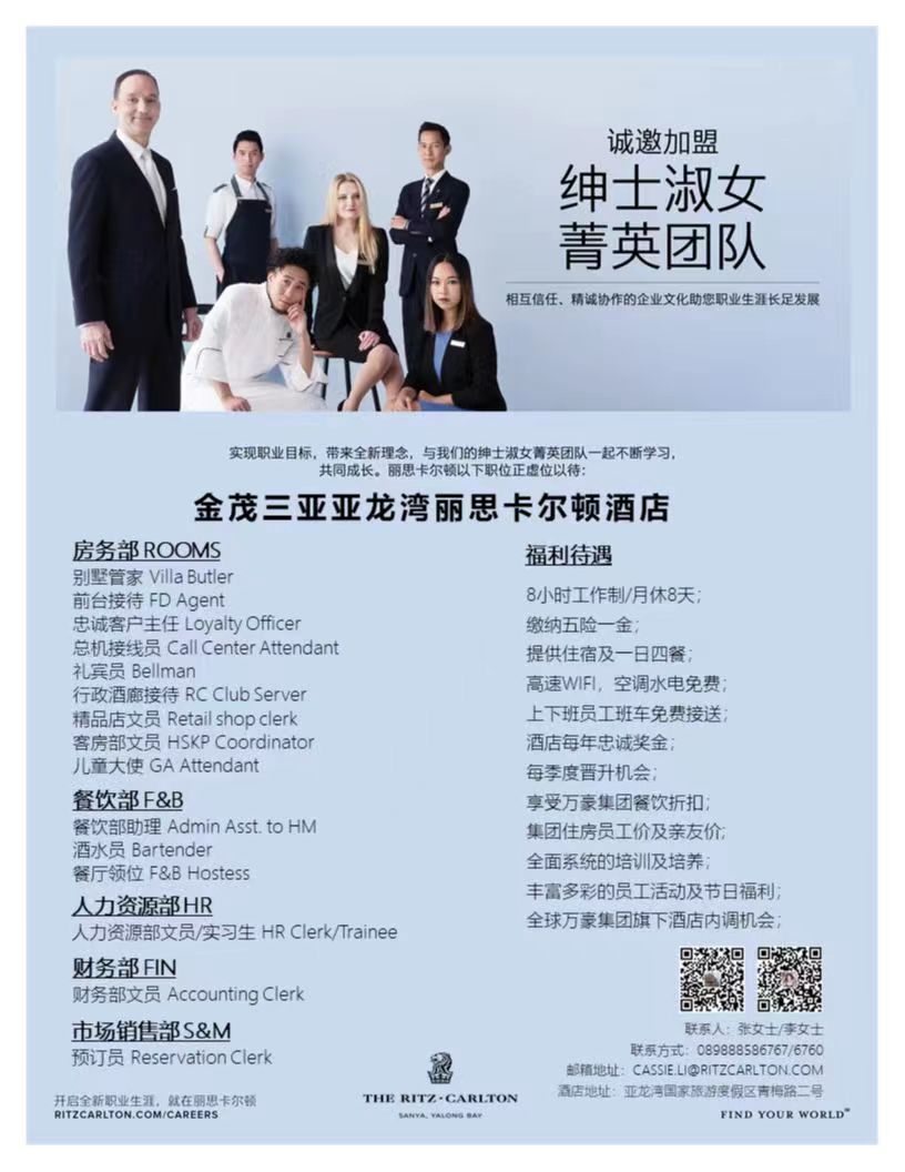 金茂三亚亚龙湾丽思卡尔顿酒店招聘信息