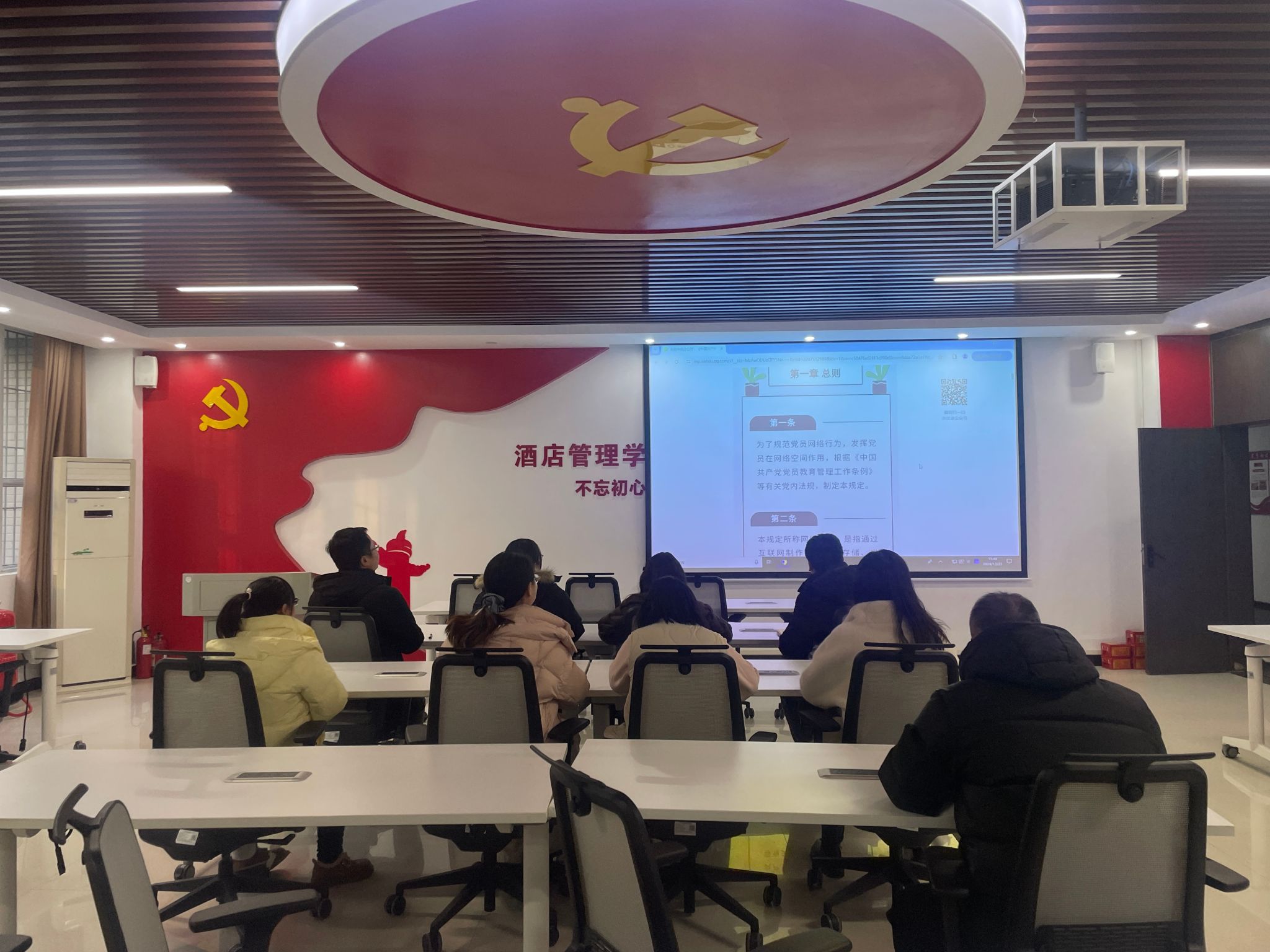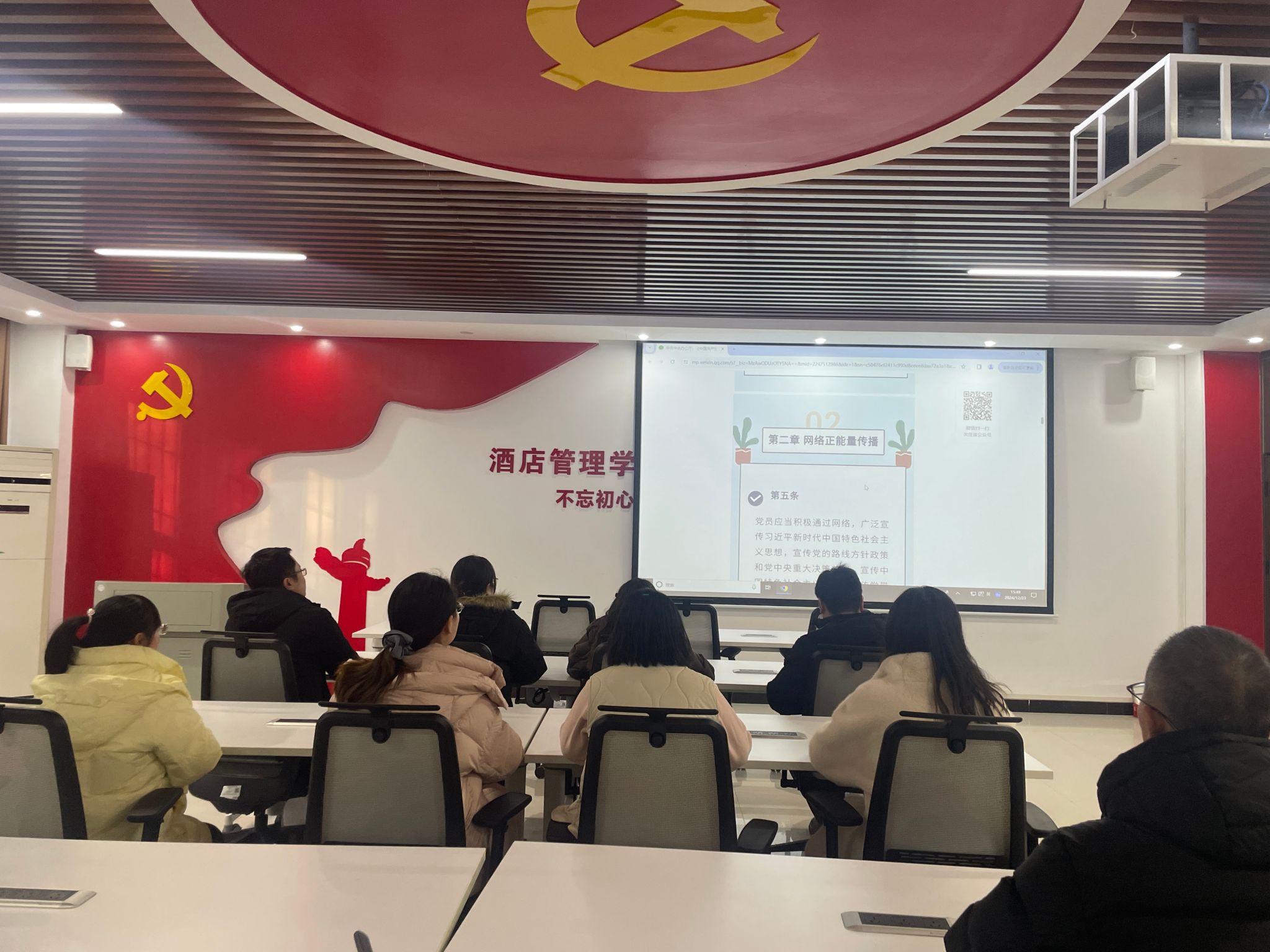 为进一步规范酒店管理学院全体党员干部在新形势、新环境下的网络行为,充分发挥党员干部在网络空间的模范带头作用,积极营造健康向上、风清气正的网络环境,12月23日,酒店管理学院学生党支部在敏行楼党员活动室组织开展关于深入学习《中国共产党党员网络行为规定》学习会。此次会议旨在全面规范党员在网络空间的行为,引导党员发挥先锋模范作用,共同营造健康向上、风清气正的网络氛围。