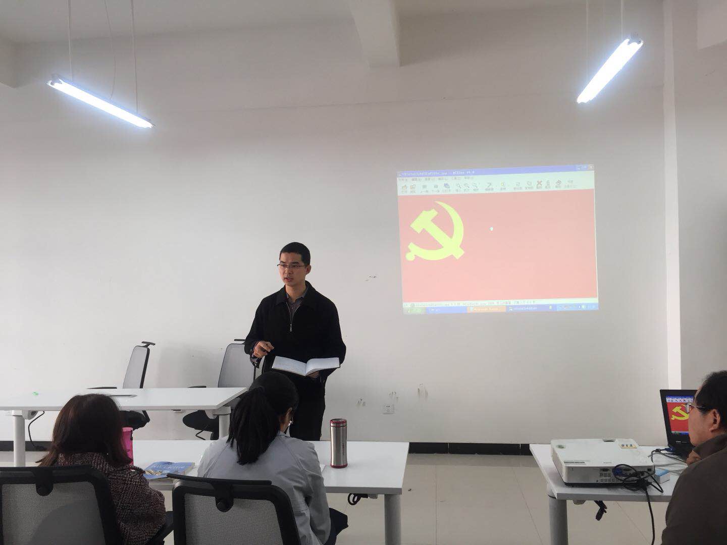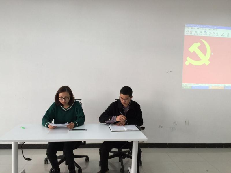 会议伊始,在马彦锋同志的带领下,全体党员面对党旗举起右手一起重温了入党誓词,强化了党章意识,培养了党员观念。随后,在系党总支宣传委员余晓岚同志带领下,全体党员认真学习了十九大报告。