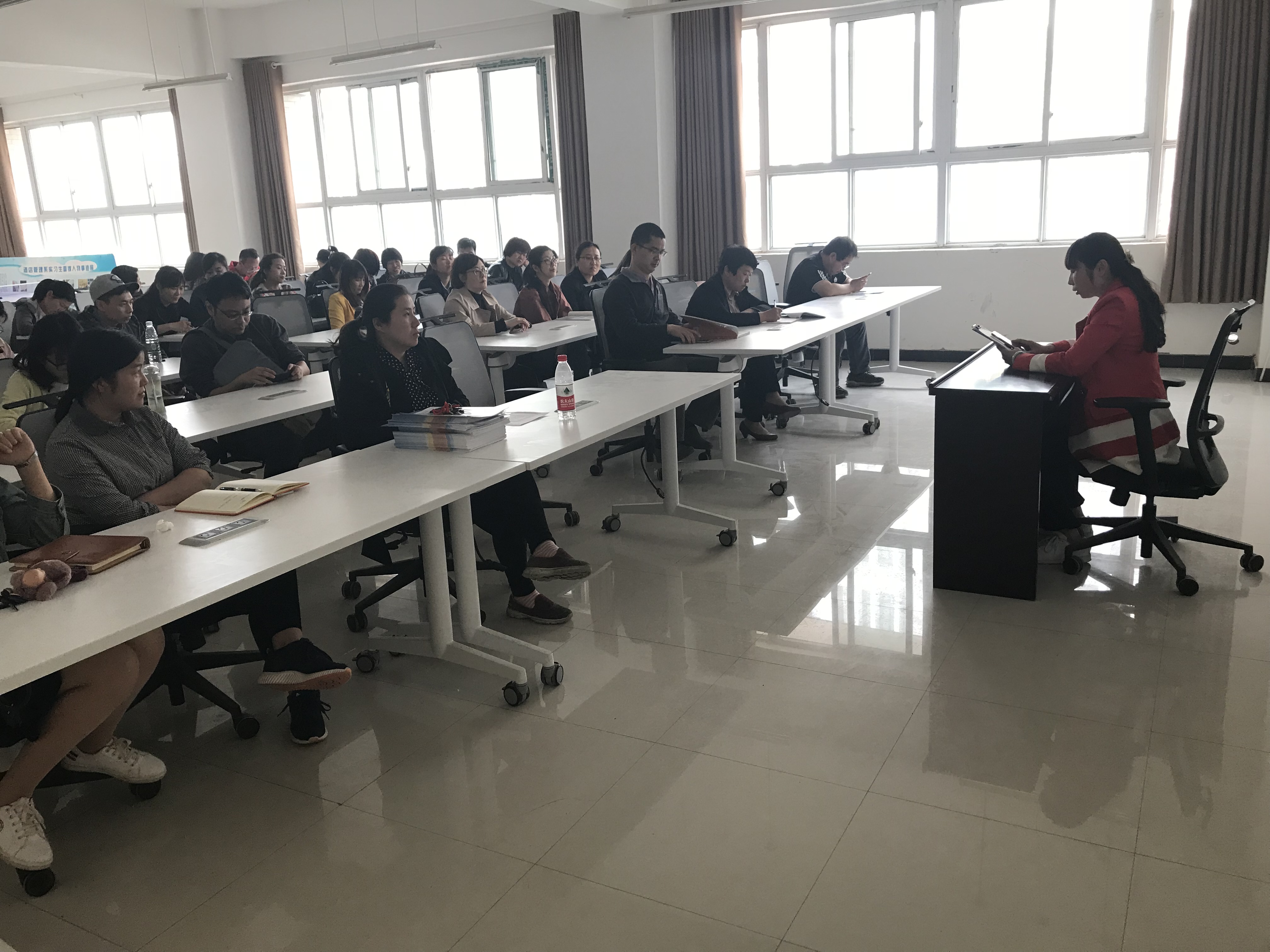 2018的春天必将是一个不平凡的春季,在这个万物复苏、生机盎然的阳春三月,我们又迎来了中国人民的盛大民主节日——一年一度的“两会”。两会的内容及精神成为我们每位师生关注的焦点。我系党总支为了认真落实党委决策部署,切实学习领会“两会”精神,于4月11日中午13:00组织全体教职员工在2B104会议室召开了再次学习“两会”精神会议。